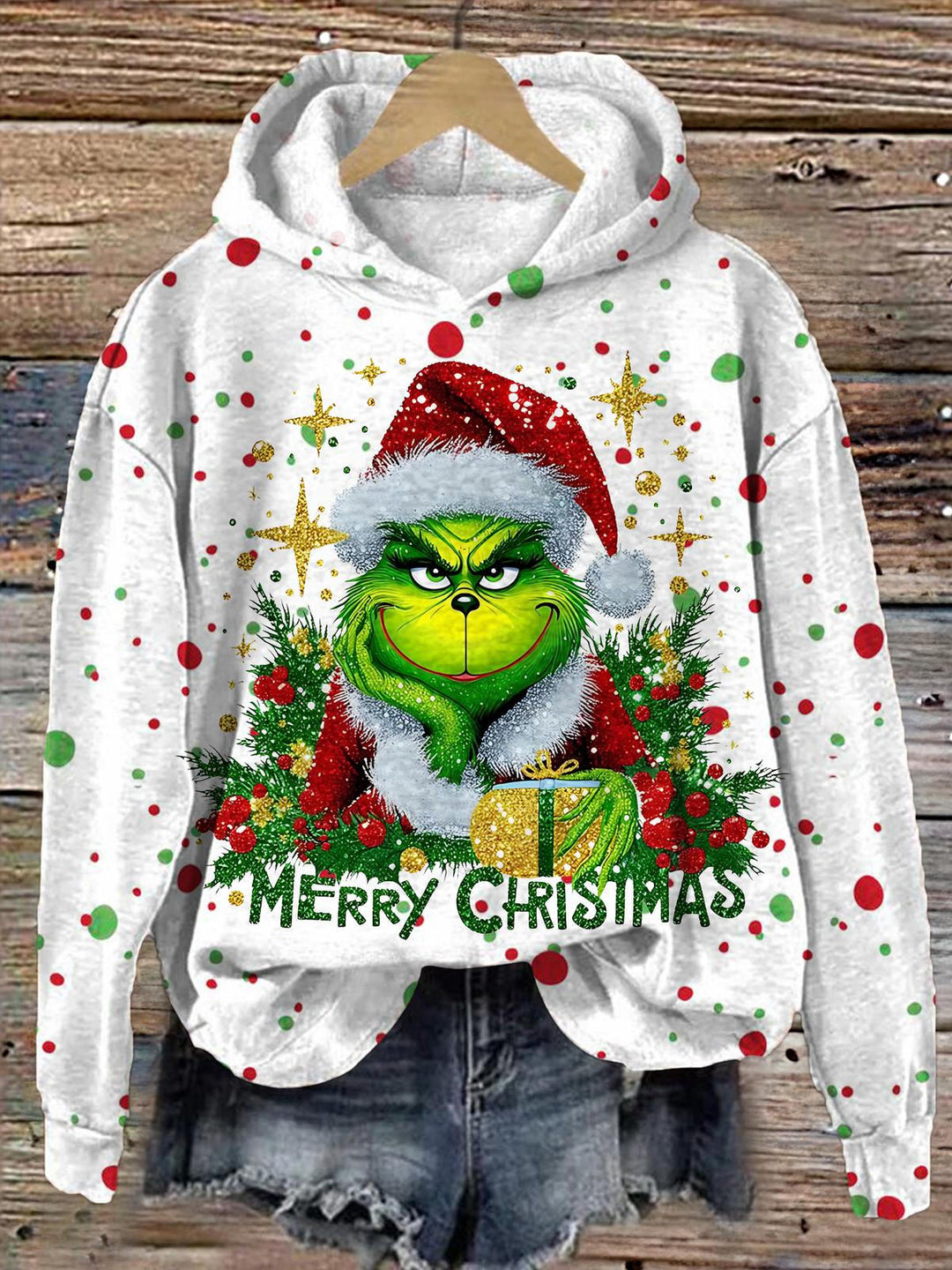 Long Sleeve Printed Hoodie Grinch Polka Dot