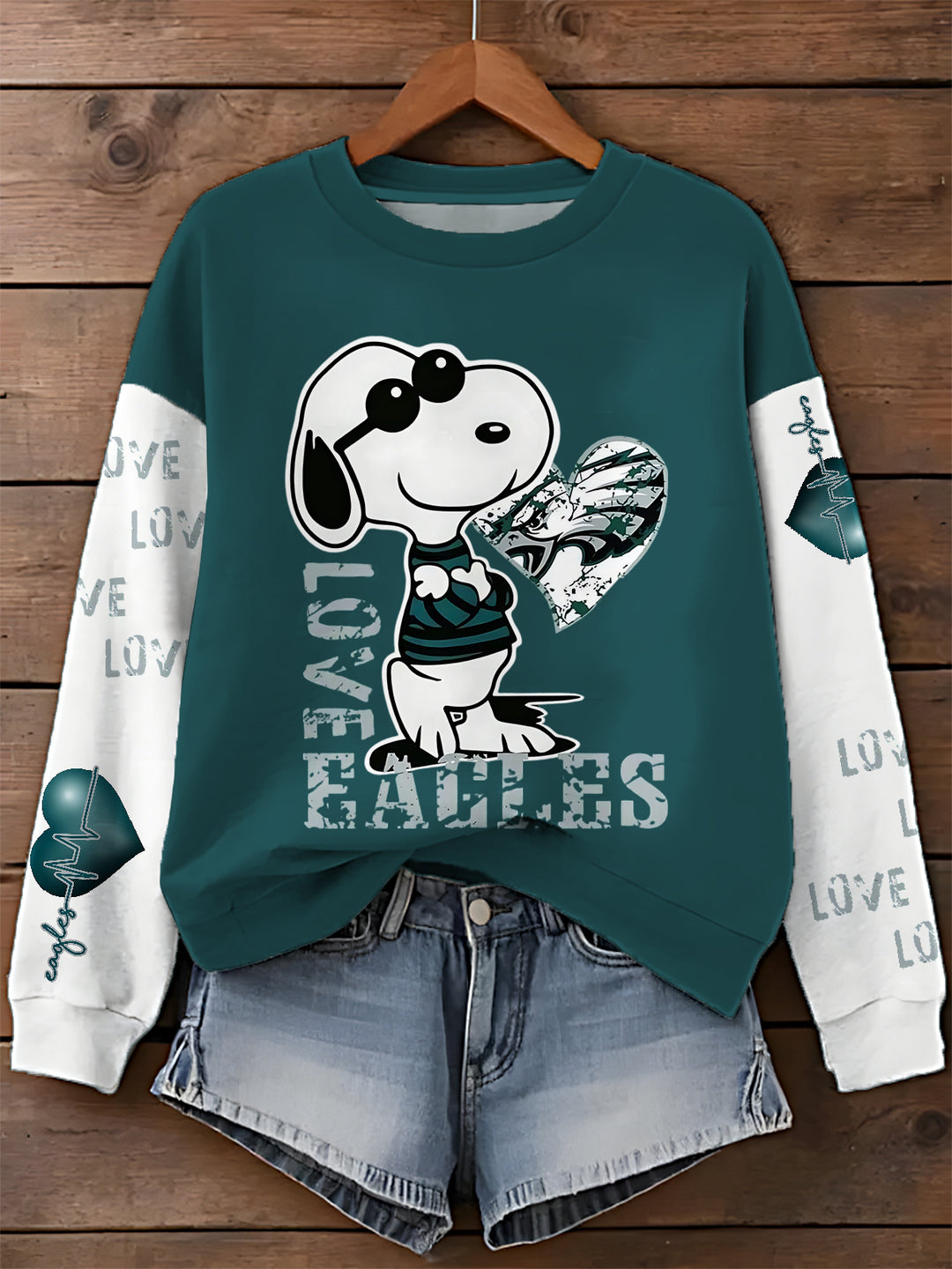 Philadelphia Eagles Snoopy Printed Long Sleeve Casual Top
