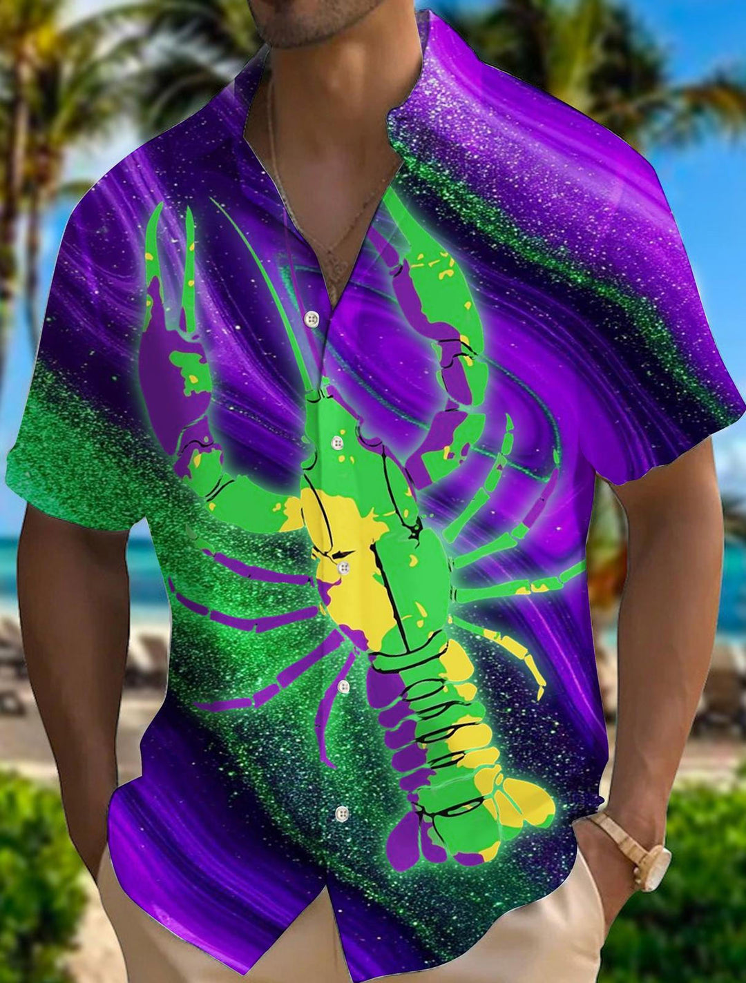 Mardi Gras Lobster Men's Short Sleeve Shirts
