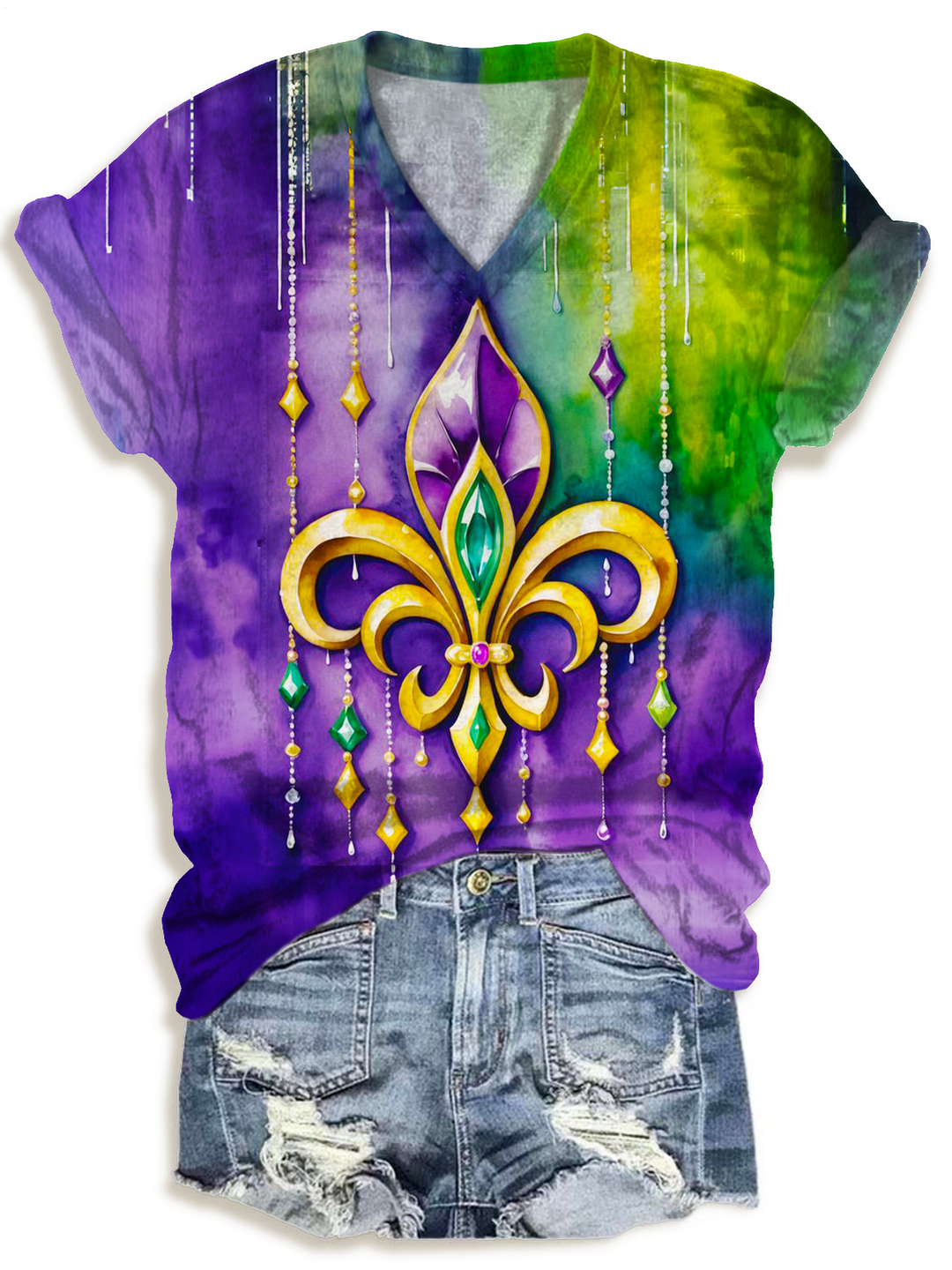 Fleur de lis Mardi Gras V-neck T-Shirt