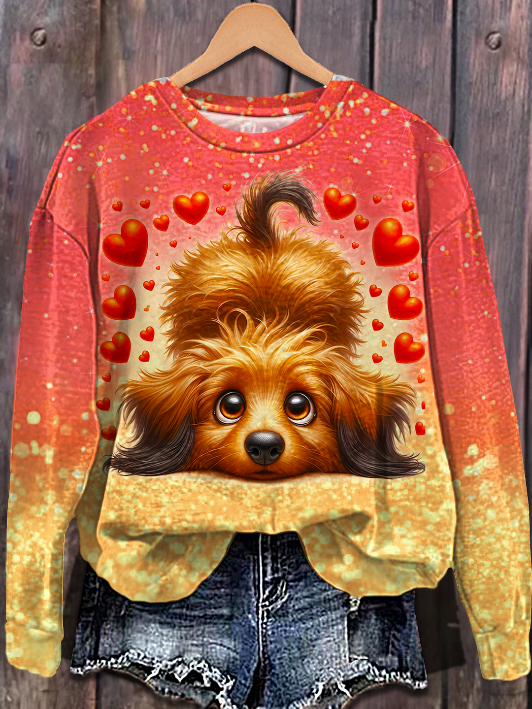 Valentine Goldendoodle Puppy Printed Long Sleeve Casual Top