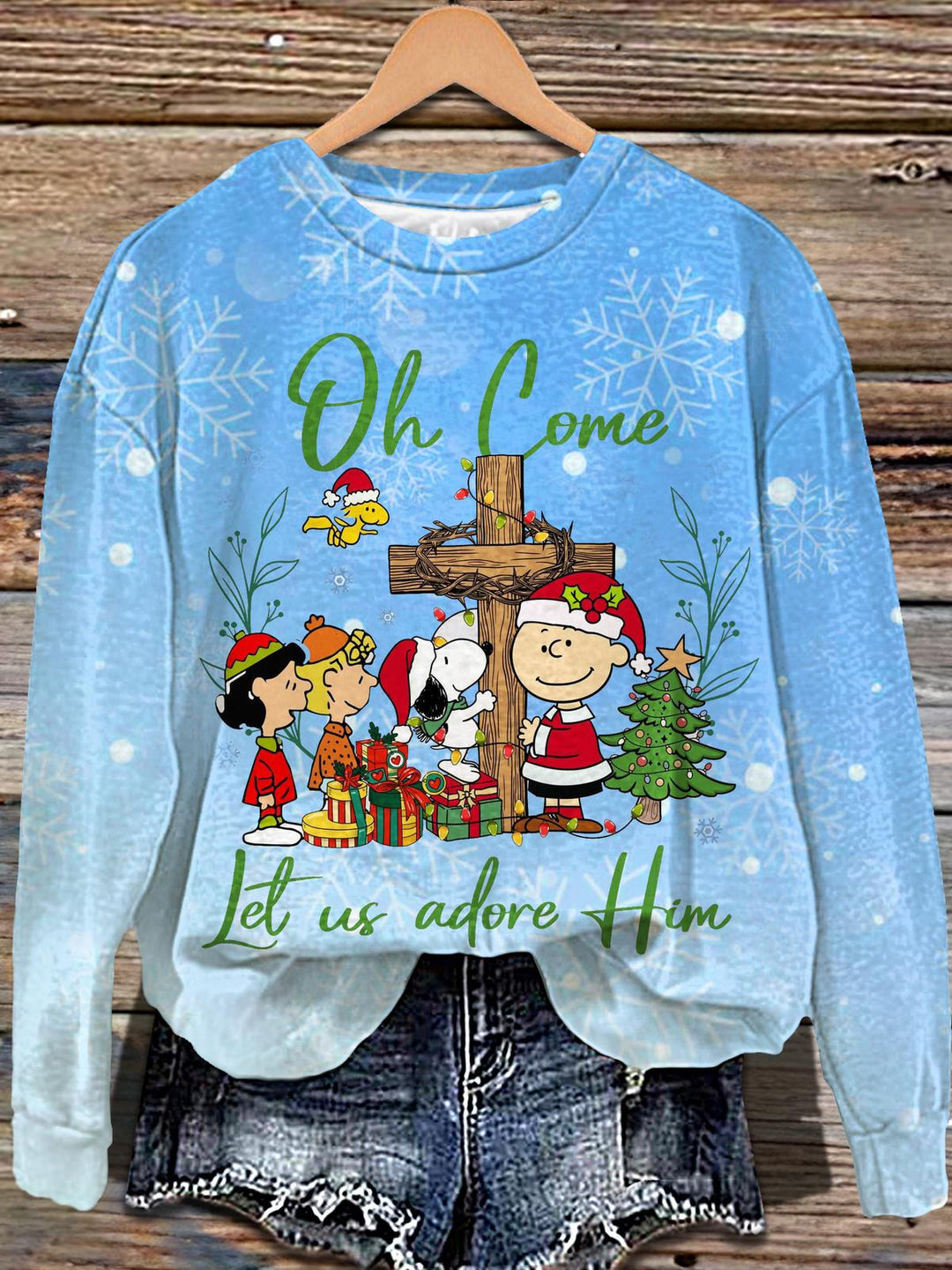 Snoopy Snow Day Prayer Printed Long Sleeve Casual Top