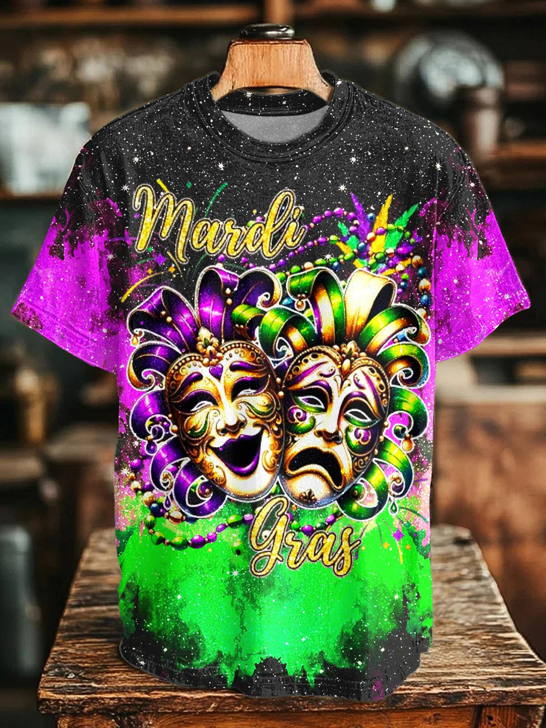 Mardi Gras Necklace Printed Long Sleeve Casual Top