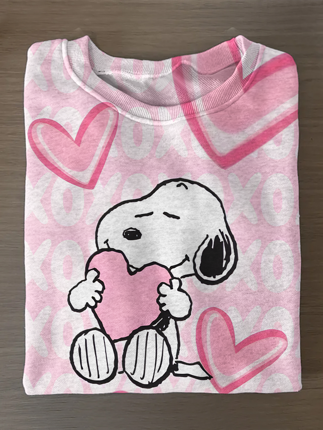 Valentines Snoopy Printed Long Sleeve Casual Top