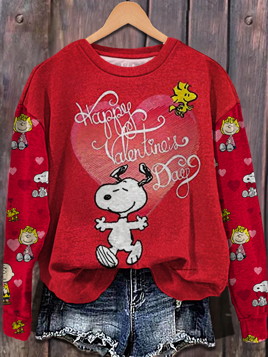 Fun Valentine's Day Snoopy Love Printed Long Sleeve Casual Top
