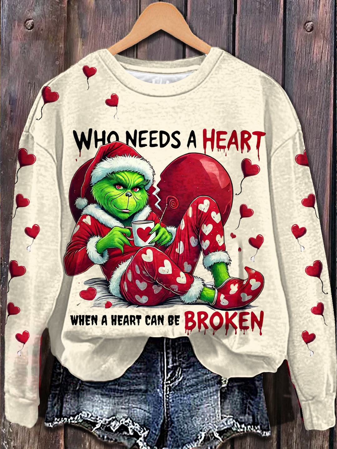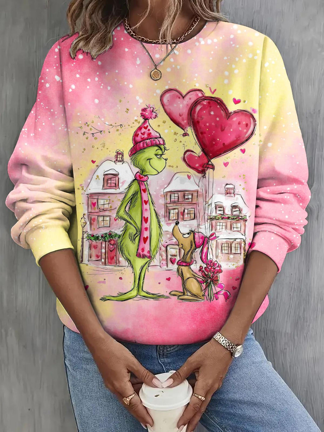 Valentine's Day Fun Grinch Printed Long Sleeve Casual Top