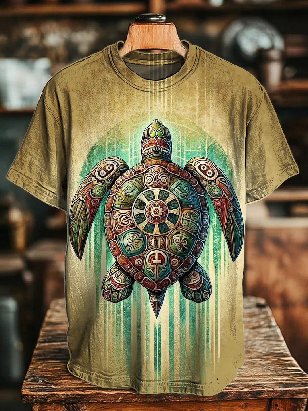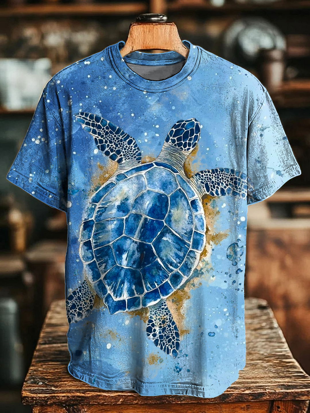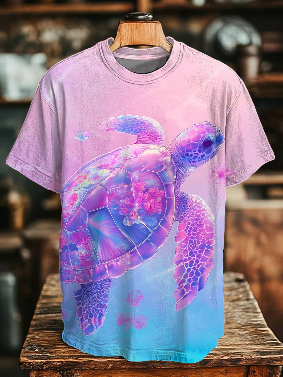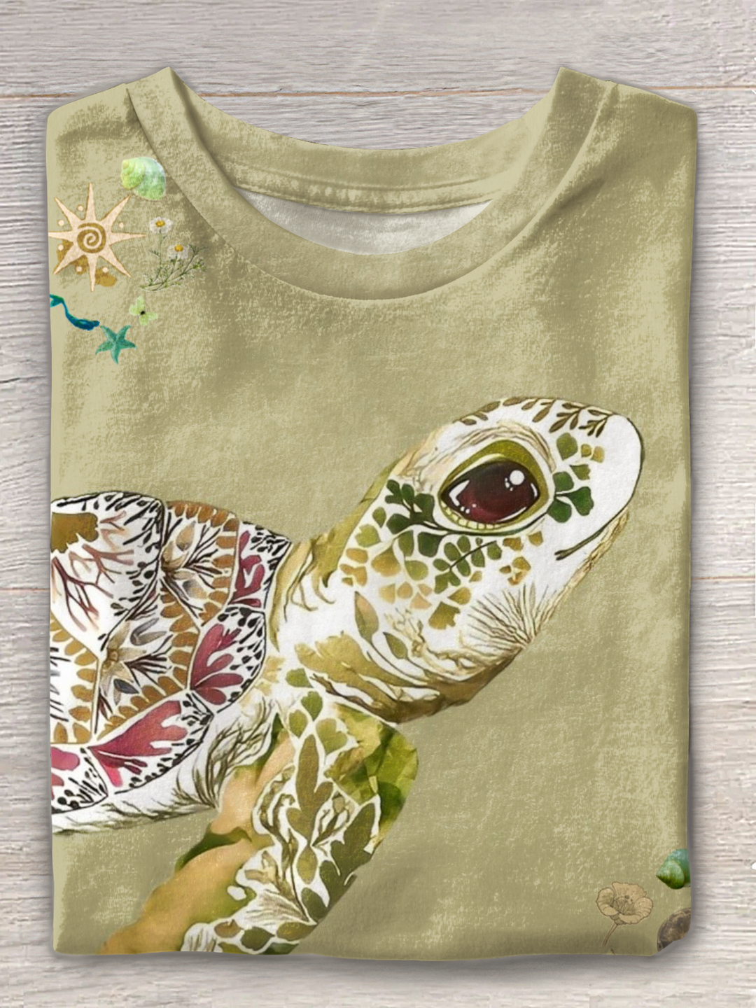 Vintage Tropical Floral Sea Turtle Crew Neck T-shirt