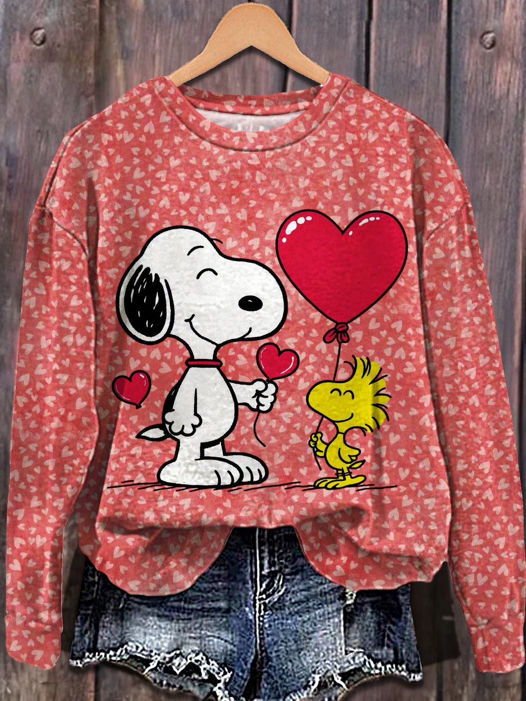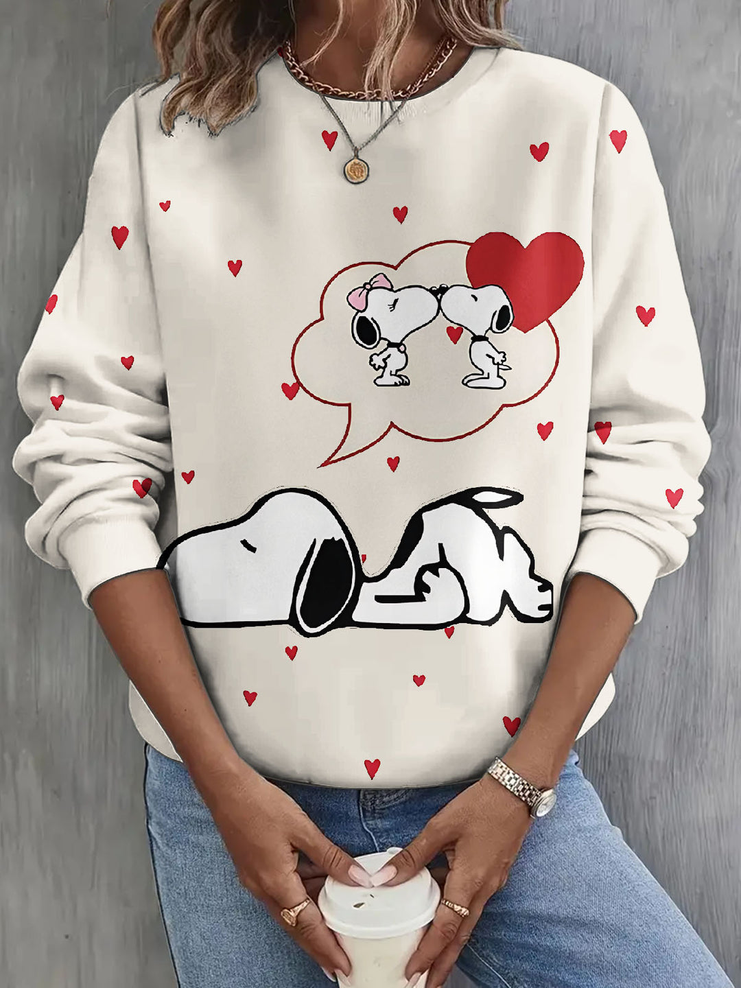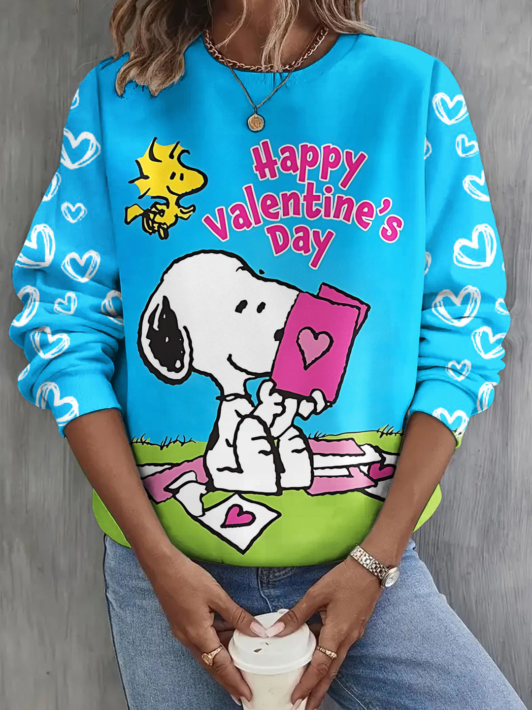 Fun Valentine's Day Snoopy Printed Long Sleeve Casual Top