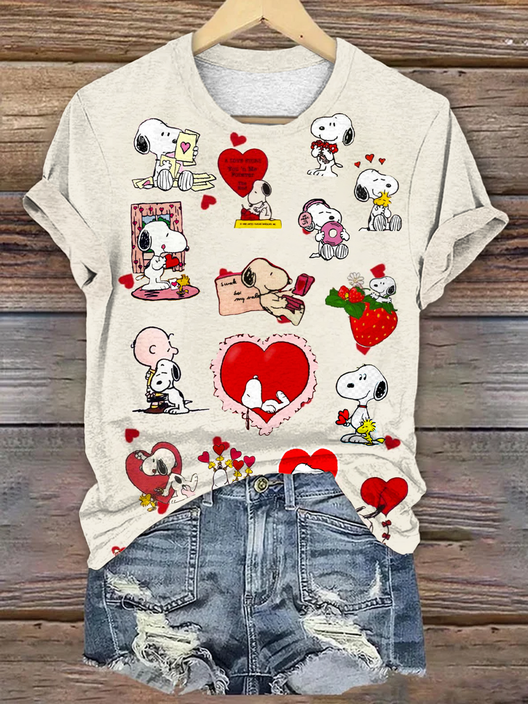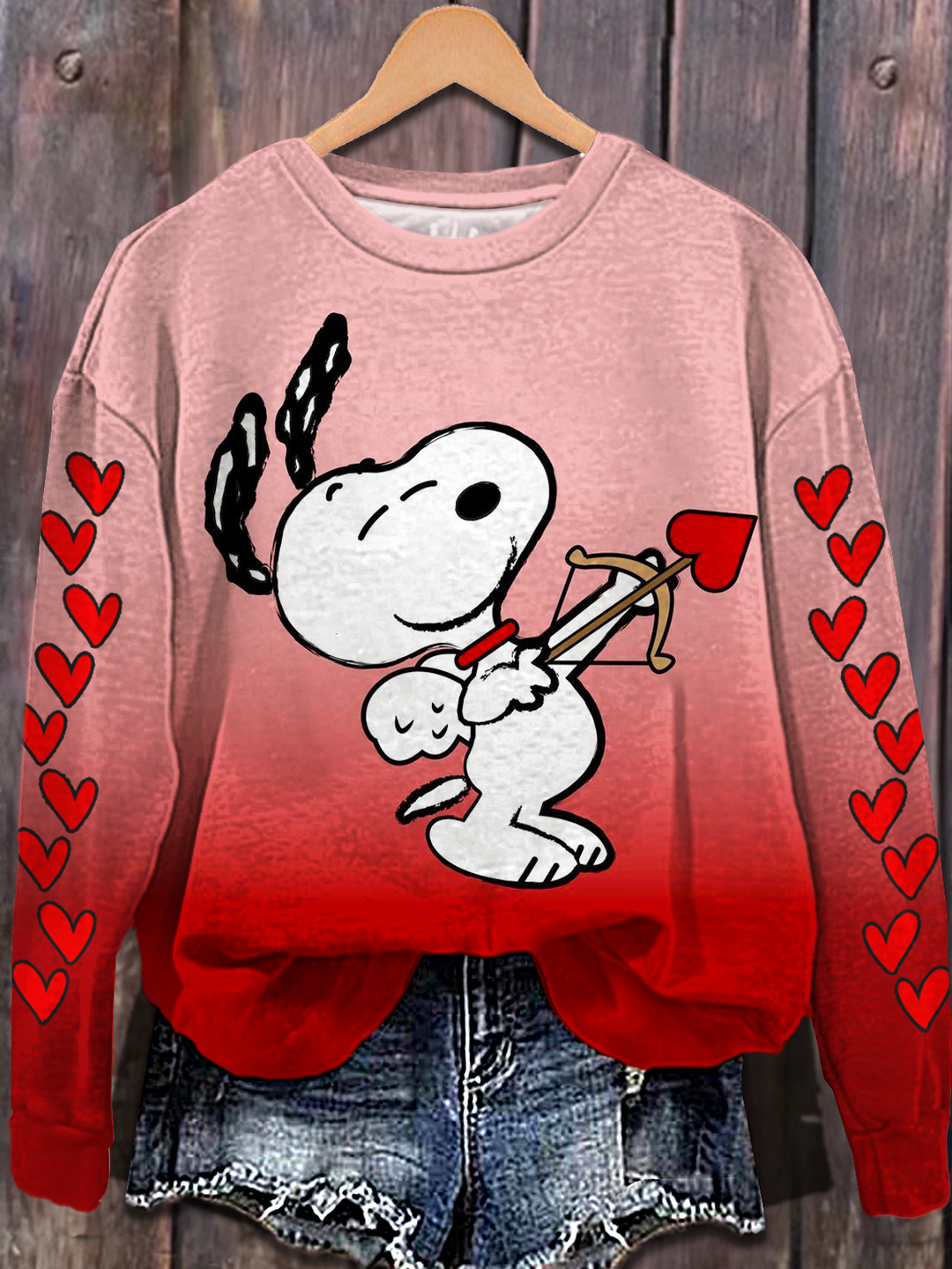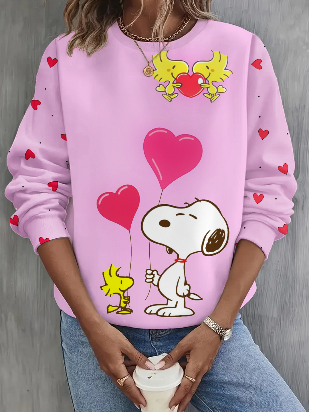 Fun Valentine's Day Snoopy Printed Long Sleeve Casual Top