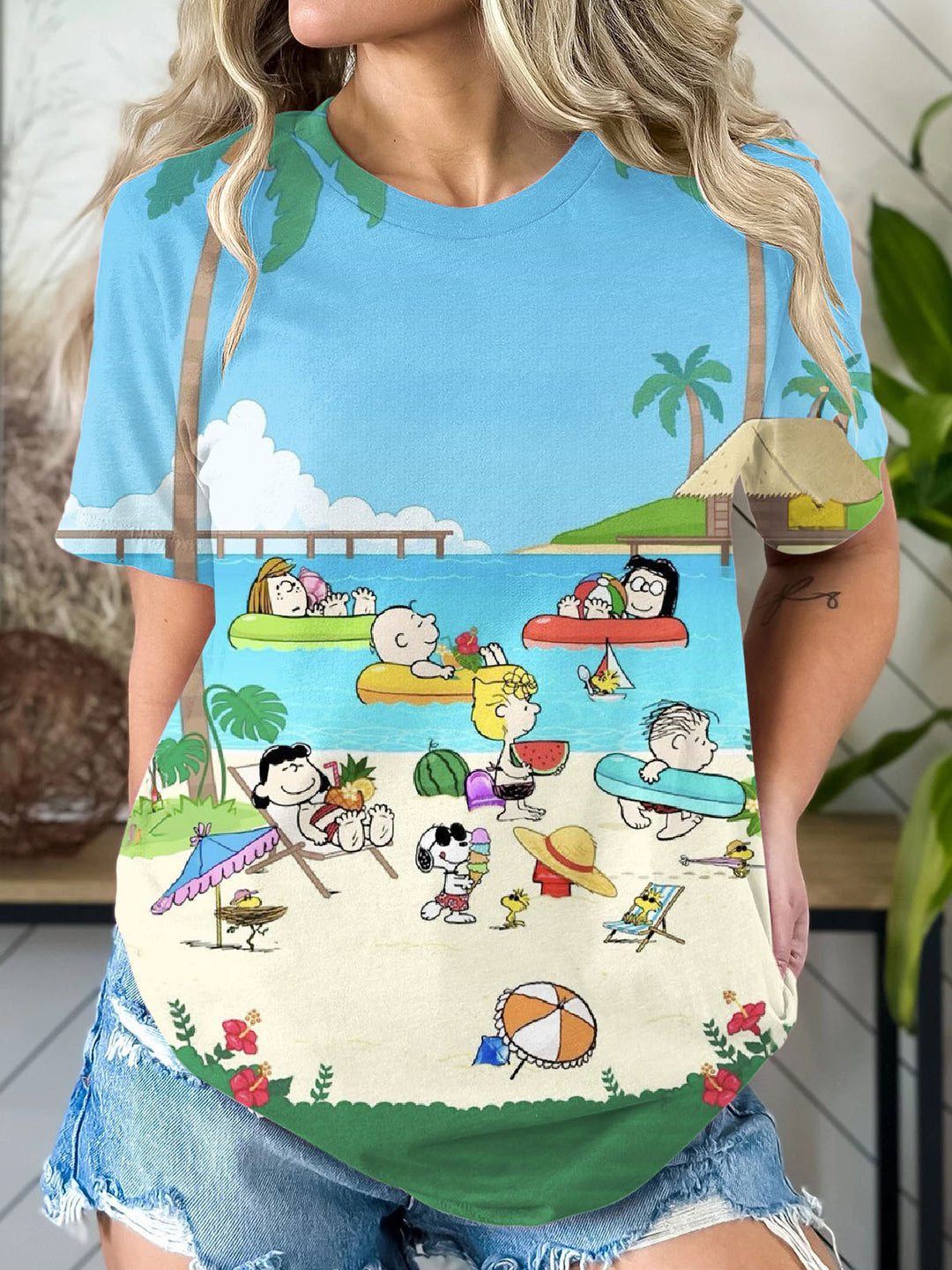 Snoopy Vacation Printed Long Sleeve Casual Top