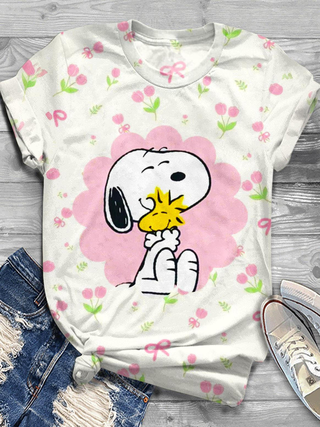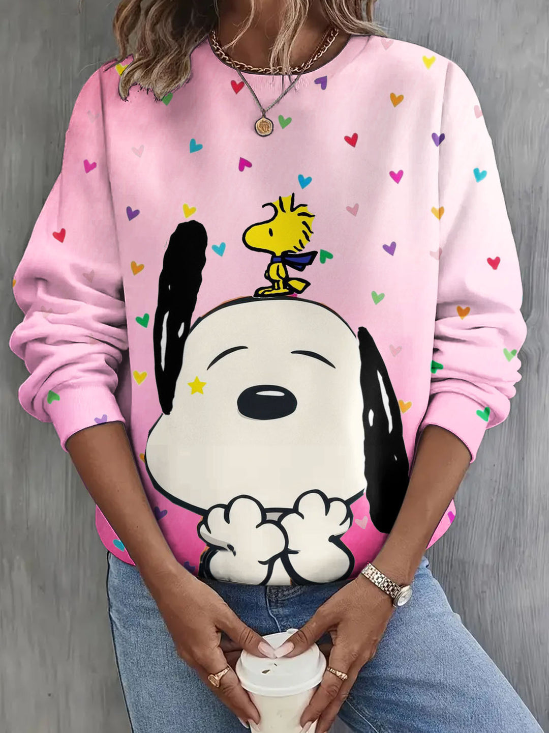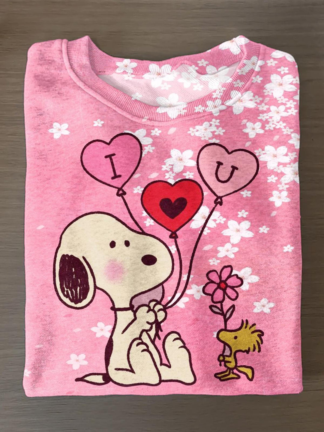 Vintage Cute Snoopy Valentine Printed Long Sleeve Casual Top