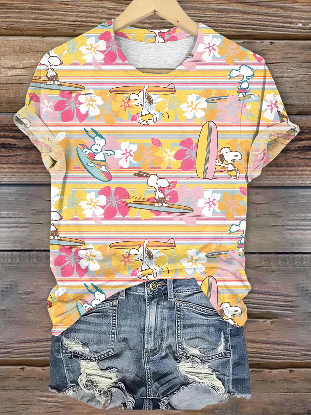 Fun Snoopy Surfing Beach Crew Neck T-shirt