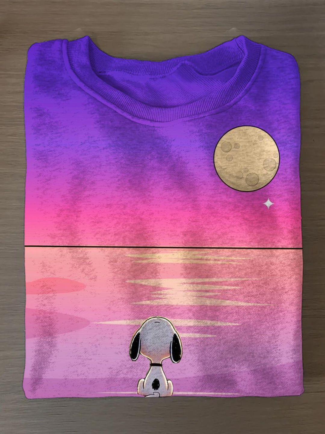 Lonely Snoopy Printed Long Sleeve Casual Top