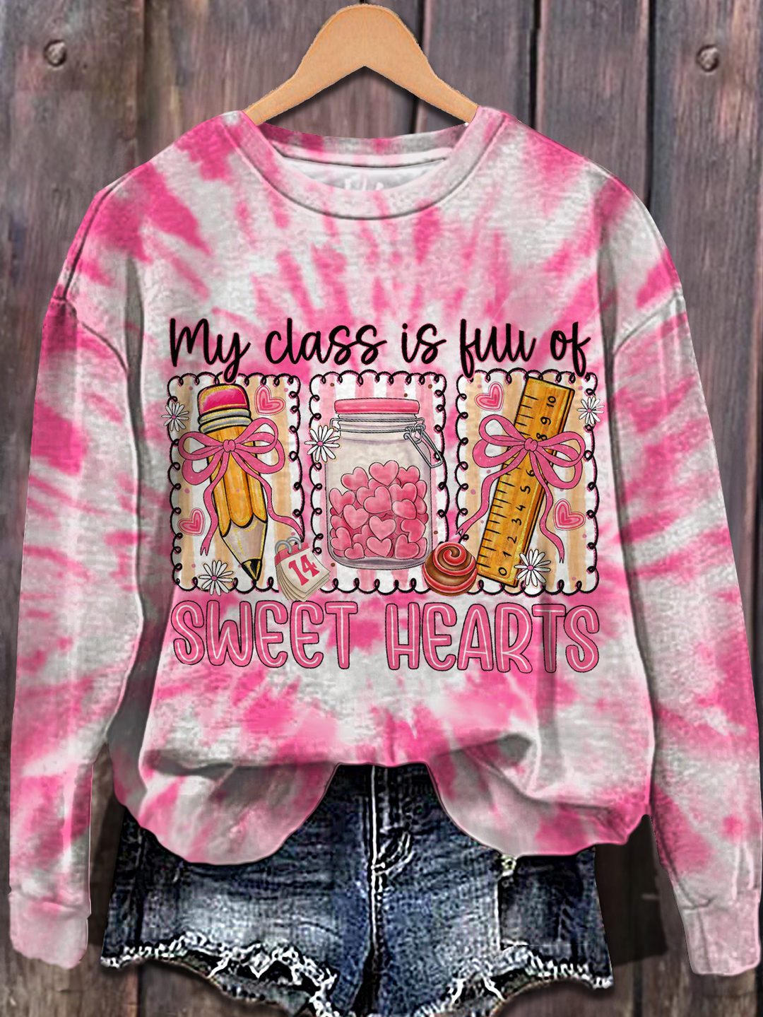 Sweet Hearts Teacher Printed Long Sleeve Casual Top