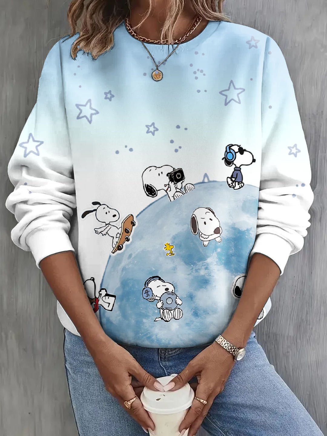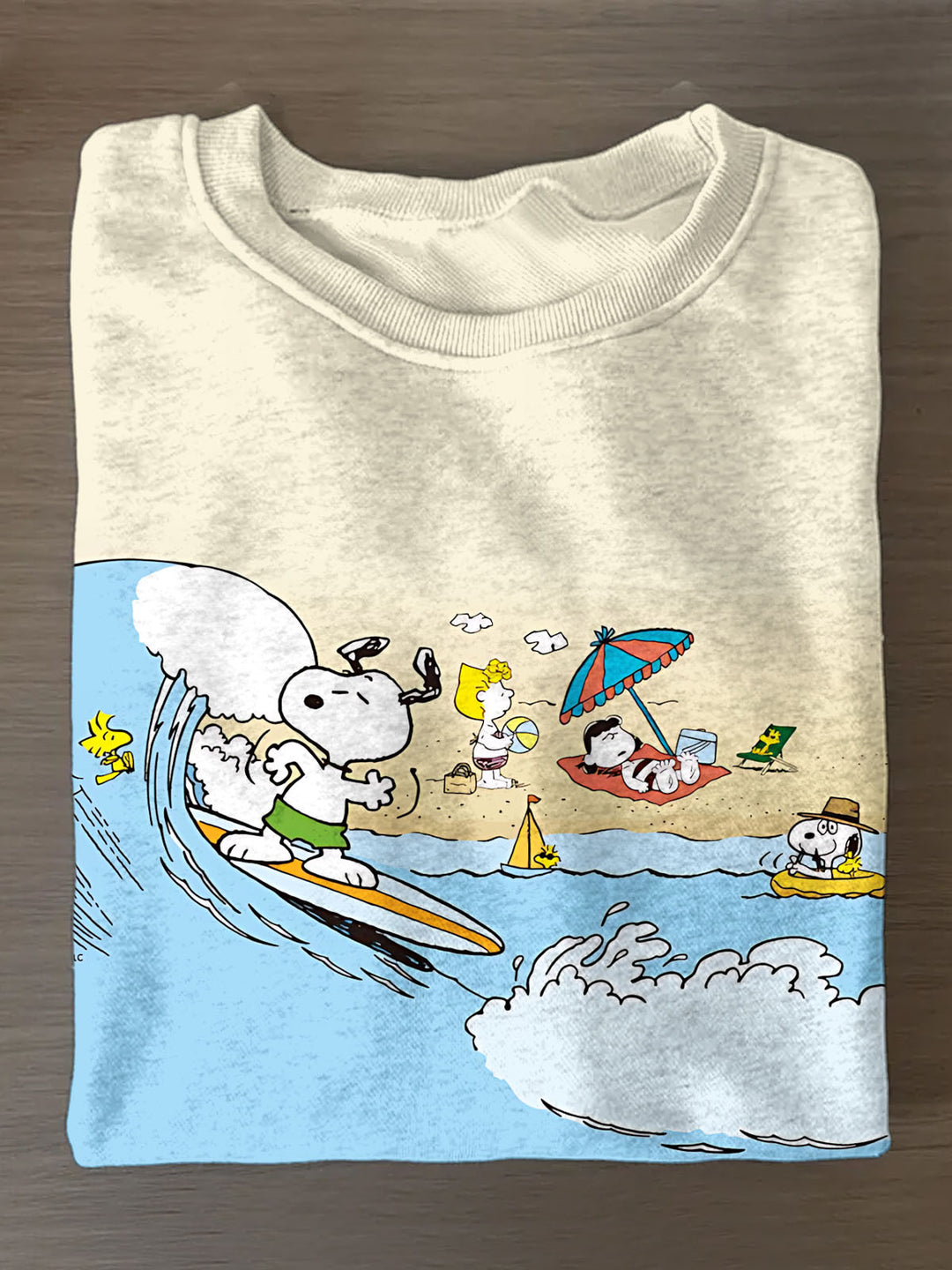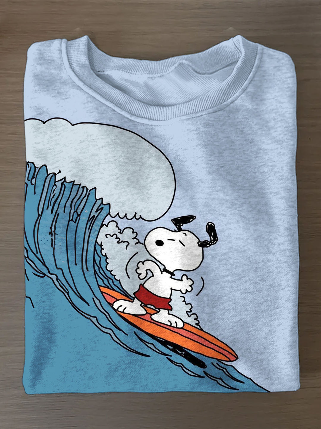 Snoopy Surfing Printed Long Sleeve Casual Top