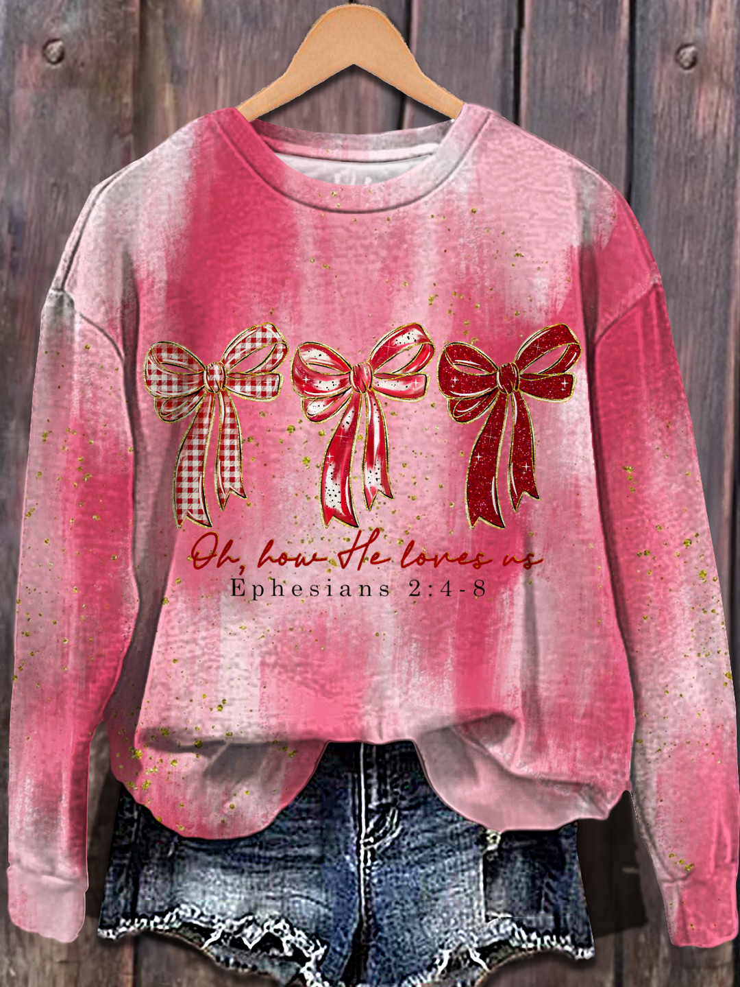 Oh How He Loves Us Printed Long Sleeve Casual Top