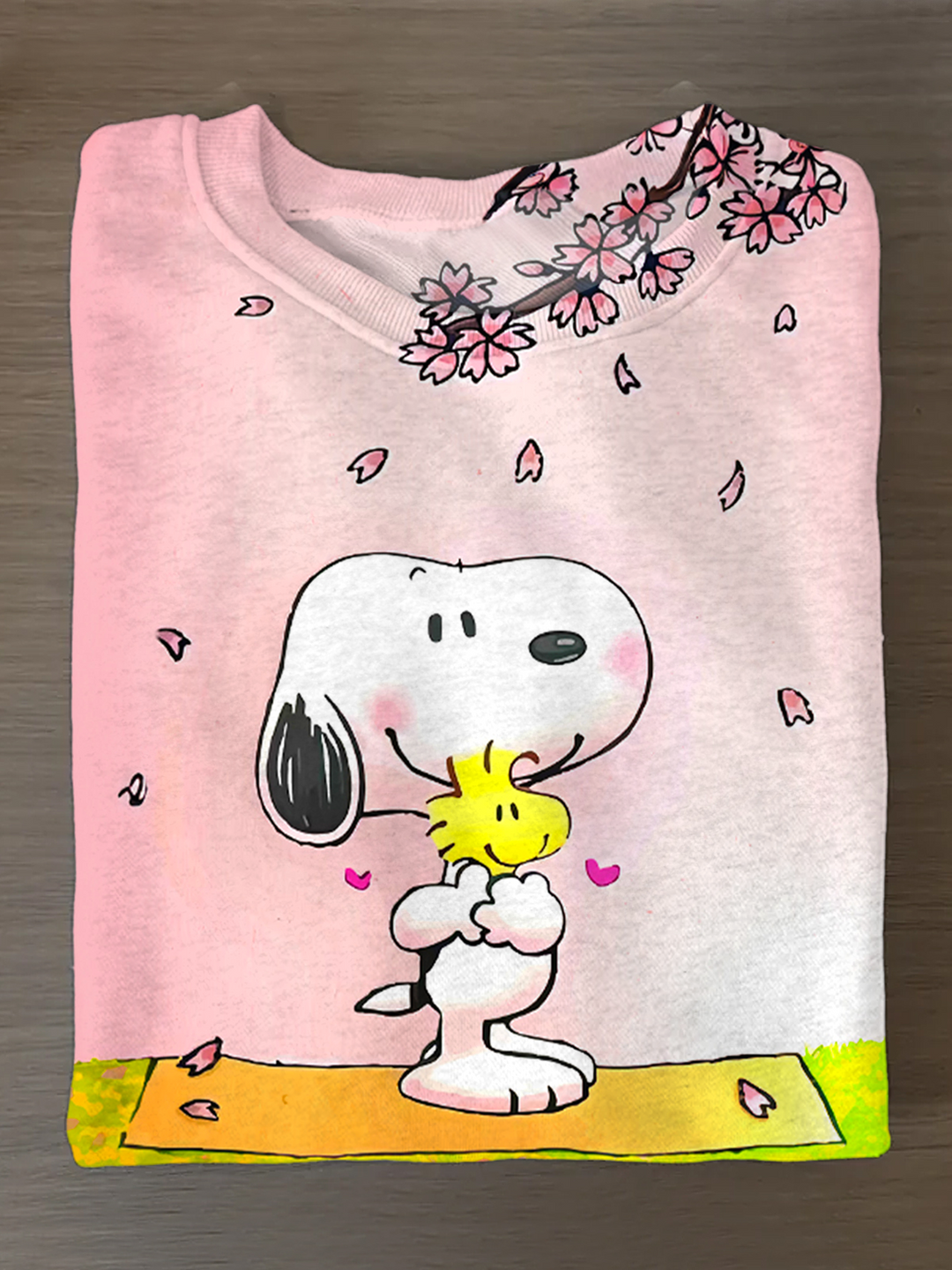 Snoopy and Woodstock with Cherry Printed Long Sleeve Casual Top