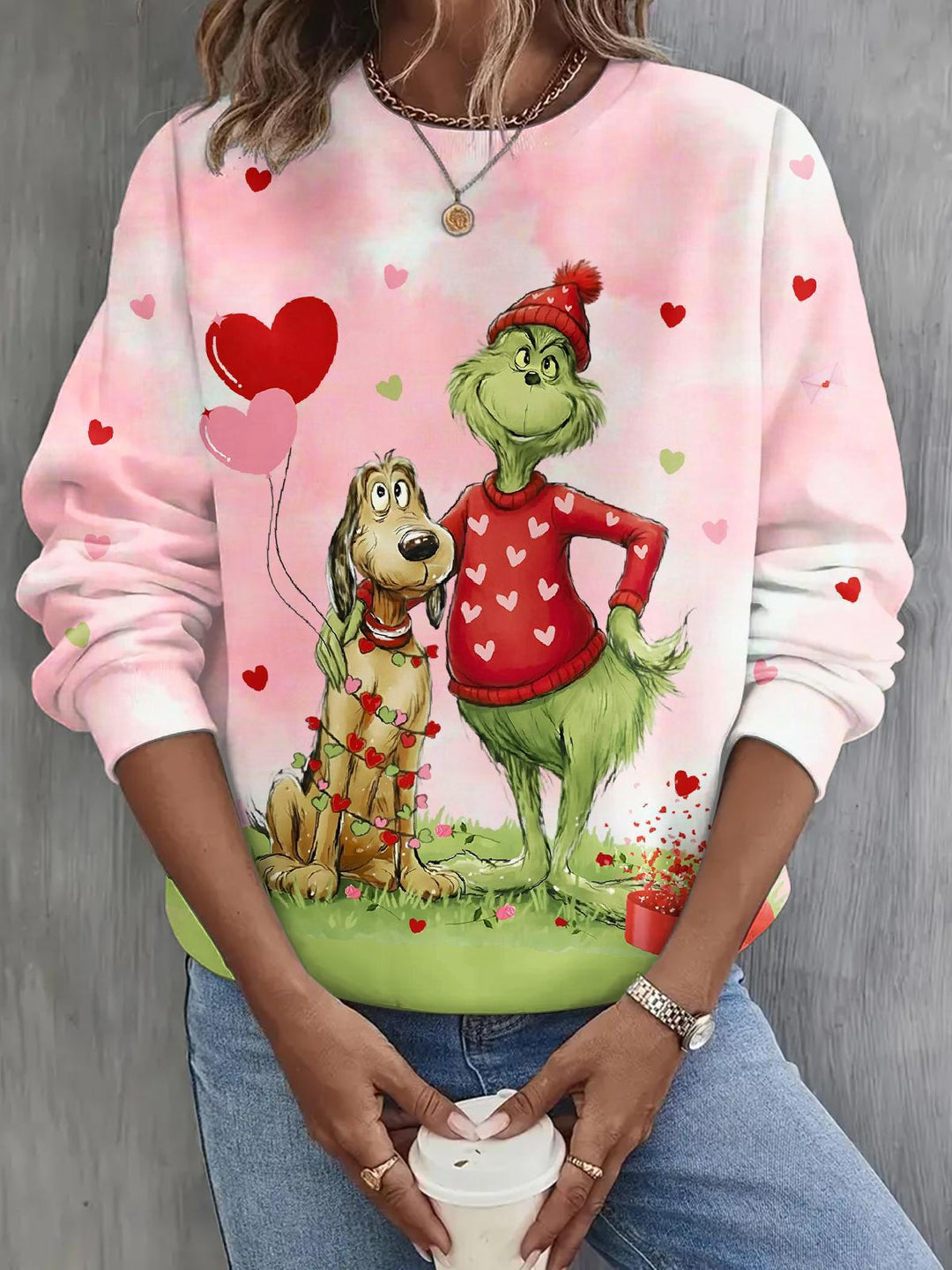 Valentine's Day Romantic Grinch Long Sleeve Casual Top