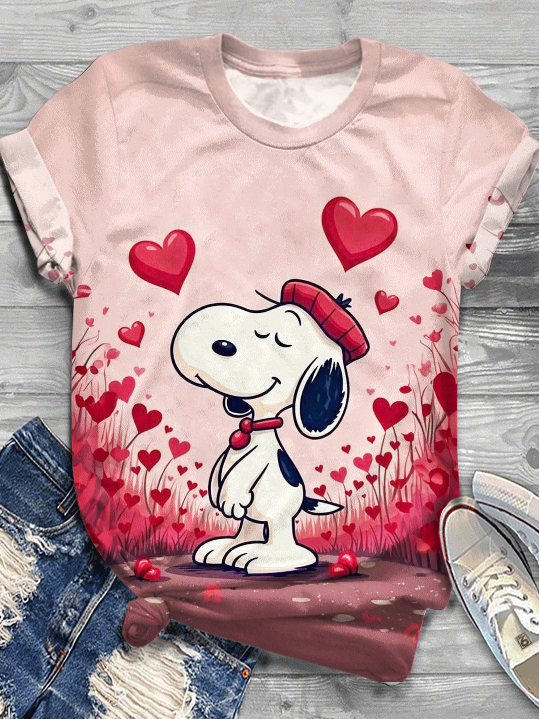 Valentine's Day Love Snoopy Crew Neck T-shirt