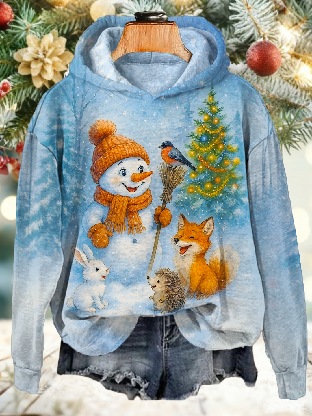 Snowman and Wood's Friends' Long Sleeve Printed Hoodie