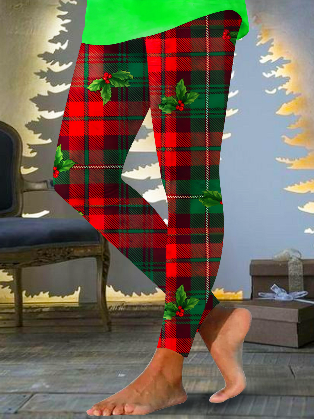Red and Green Christmas Tartan Print Leggings