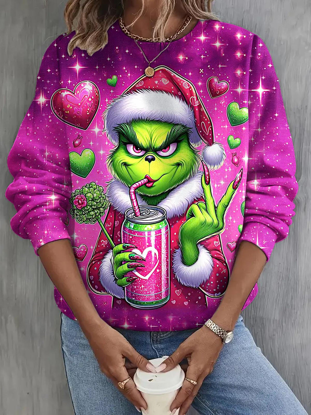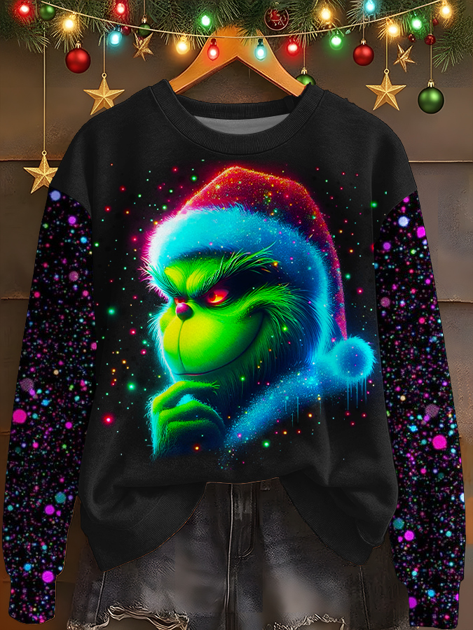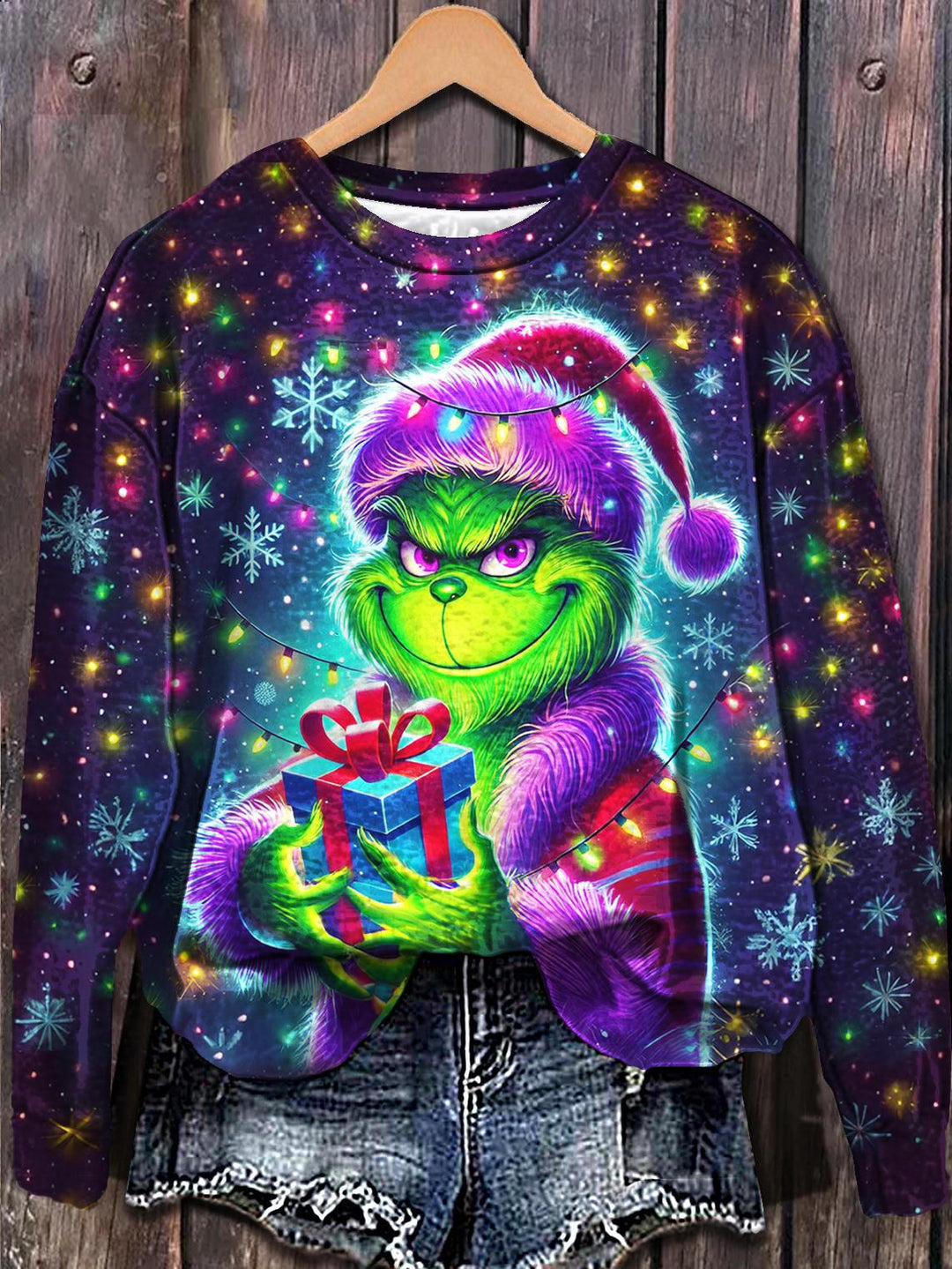 Christmas Colorful Grinch Printed Long Sleeve Casual Top