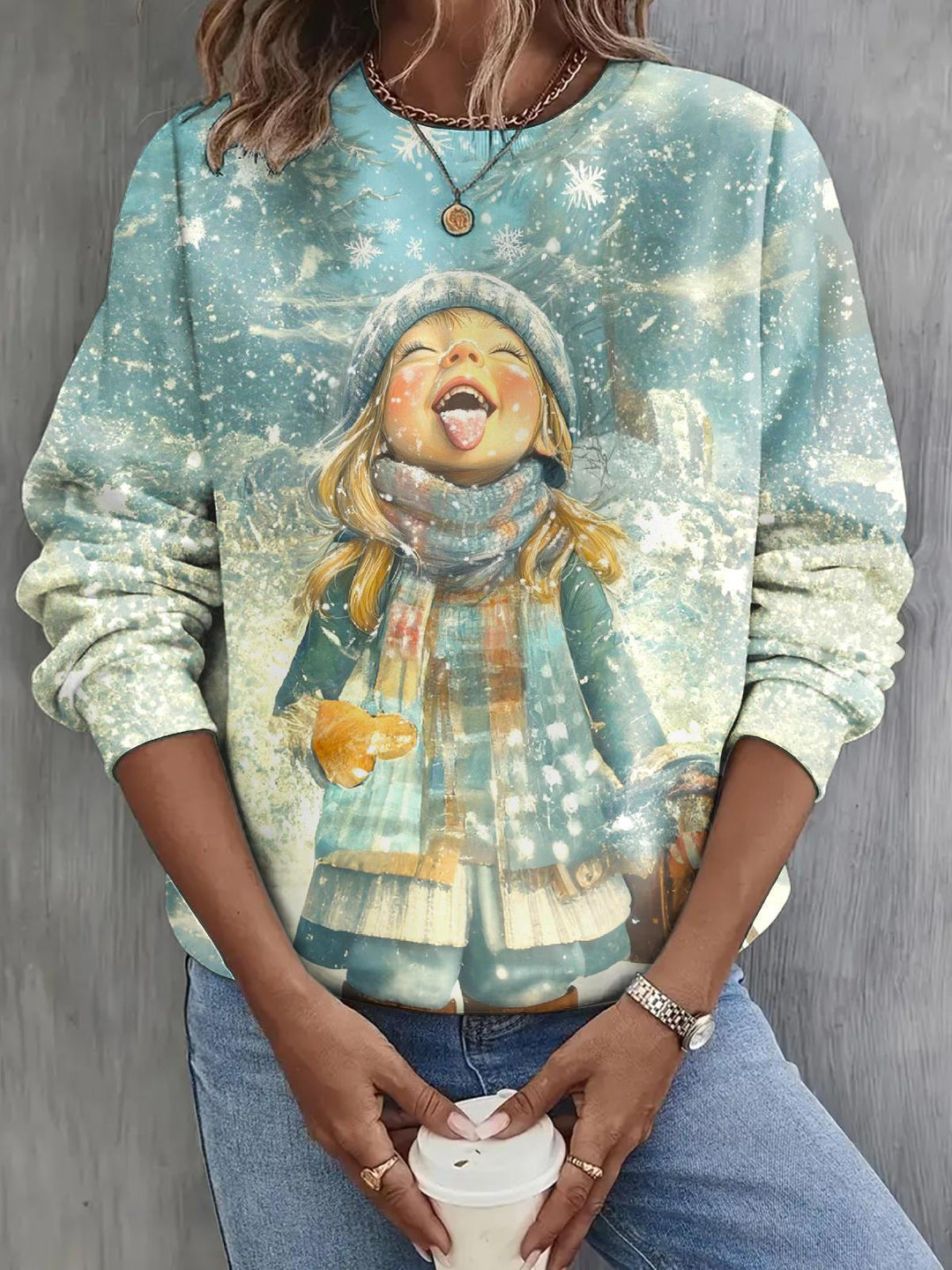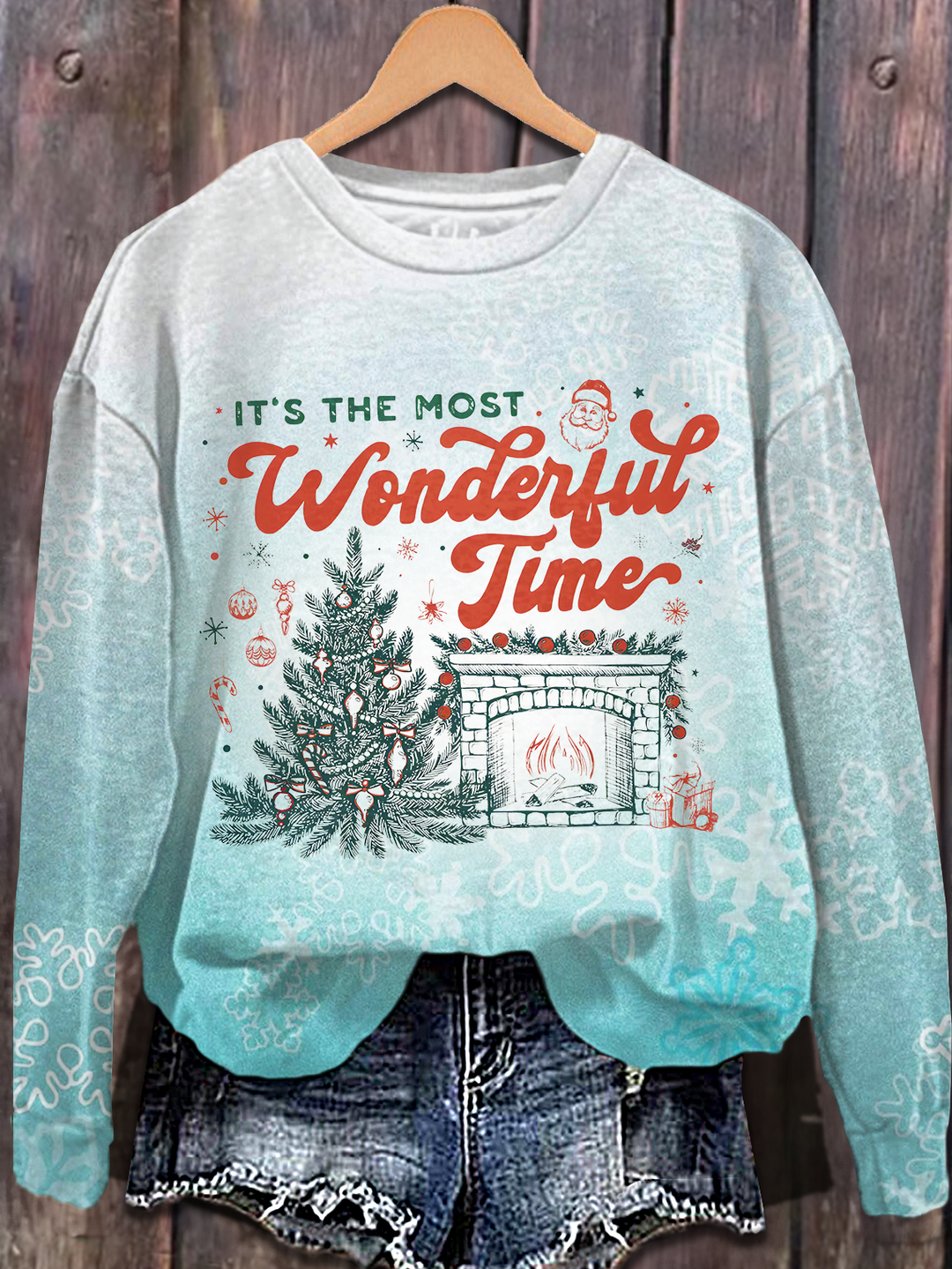 Colors Christmas Time Printed Long Sleeve Casual Top