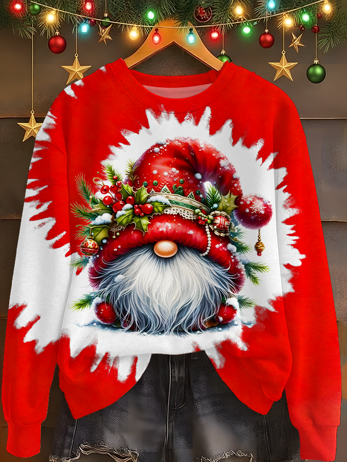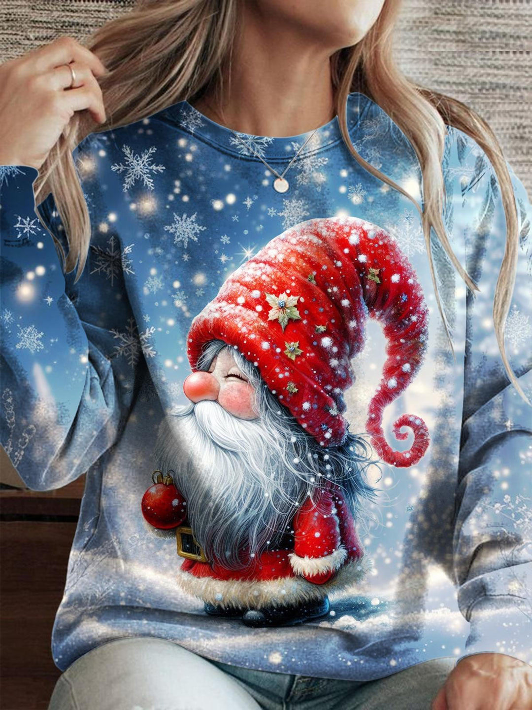 Christmas Gnomes Printed Long Sleeve Casual Top