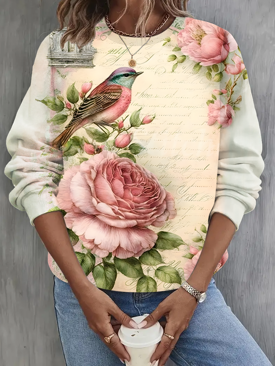 Vintage Shabby Chic Garden Roses Long Sleeve Casual Top