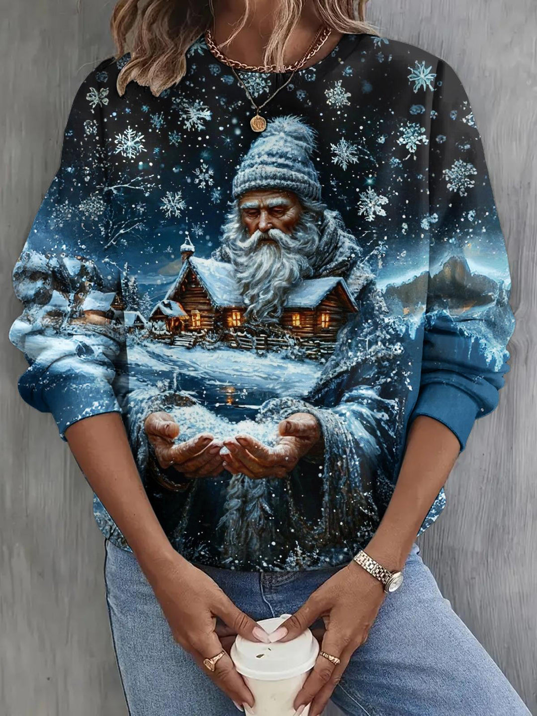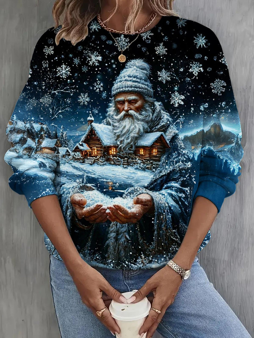 Winter Cute Santa Claus Print Long Sleeve Casual Top