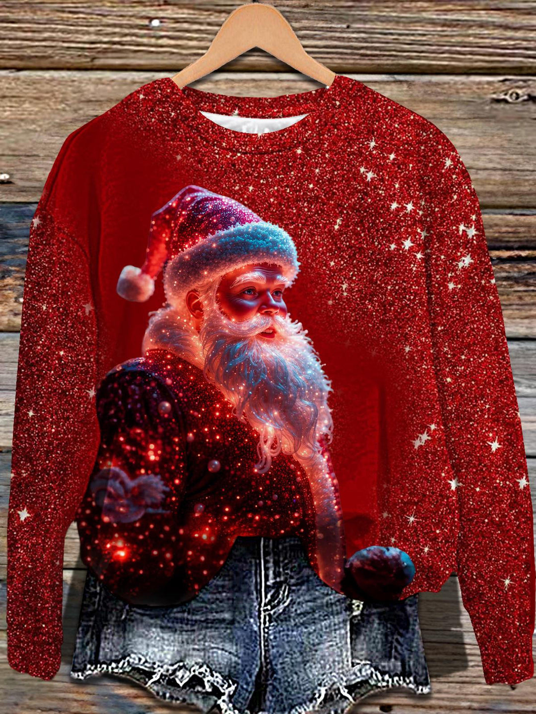 Santa Claus Glitter Printed Long Sleeve Casual Top