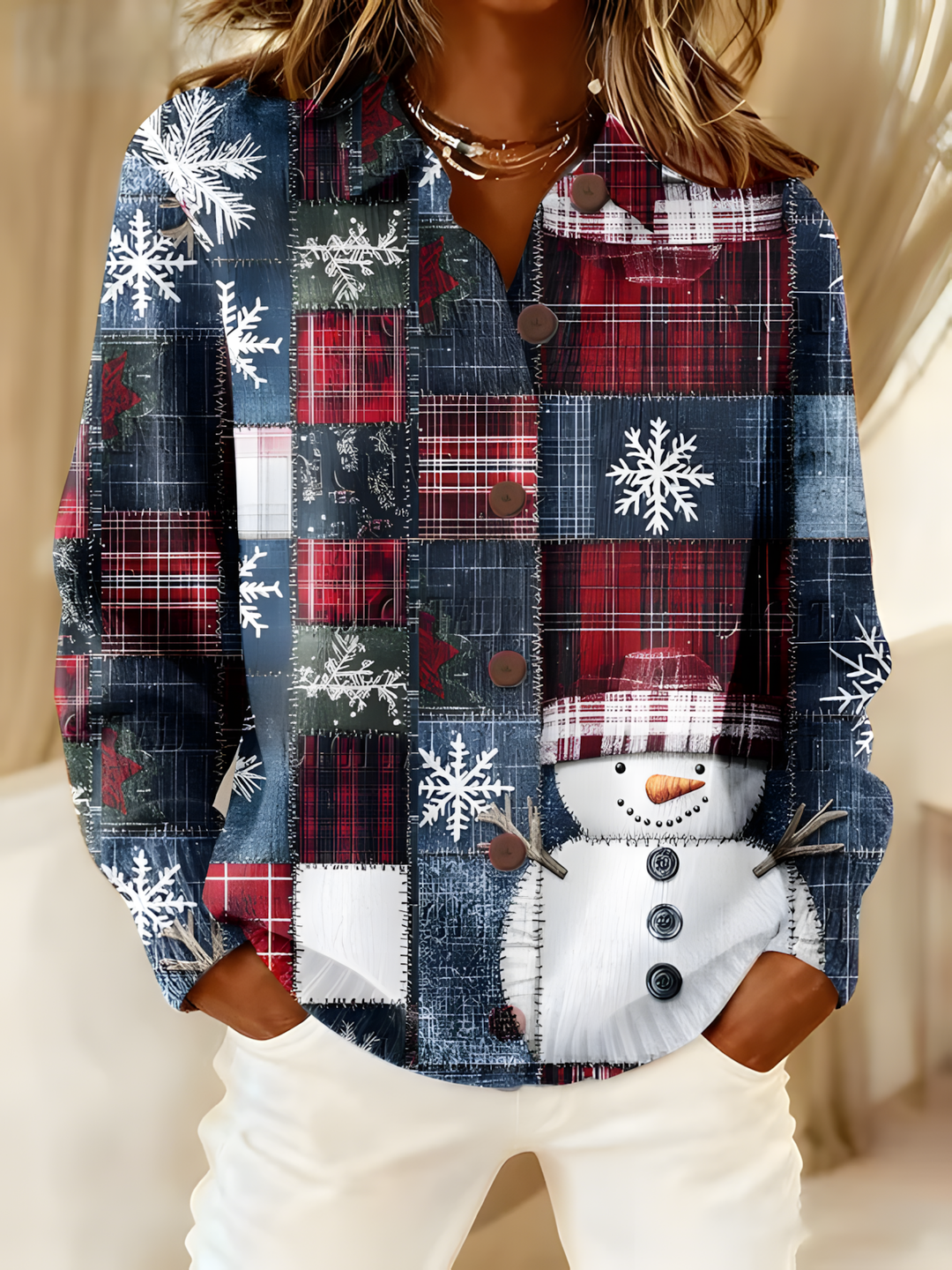 Snowman and Redbird in Winter Printed Long Sleeve Casual Top