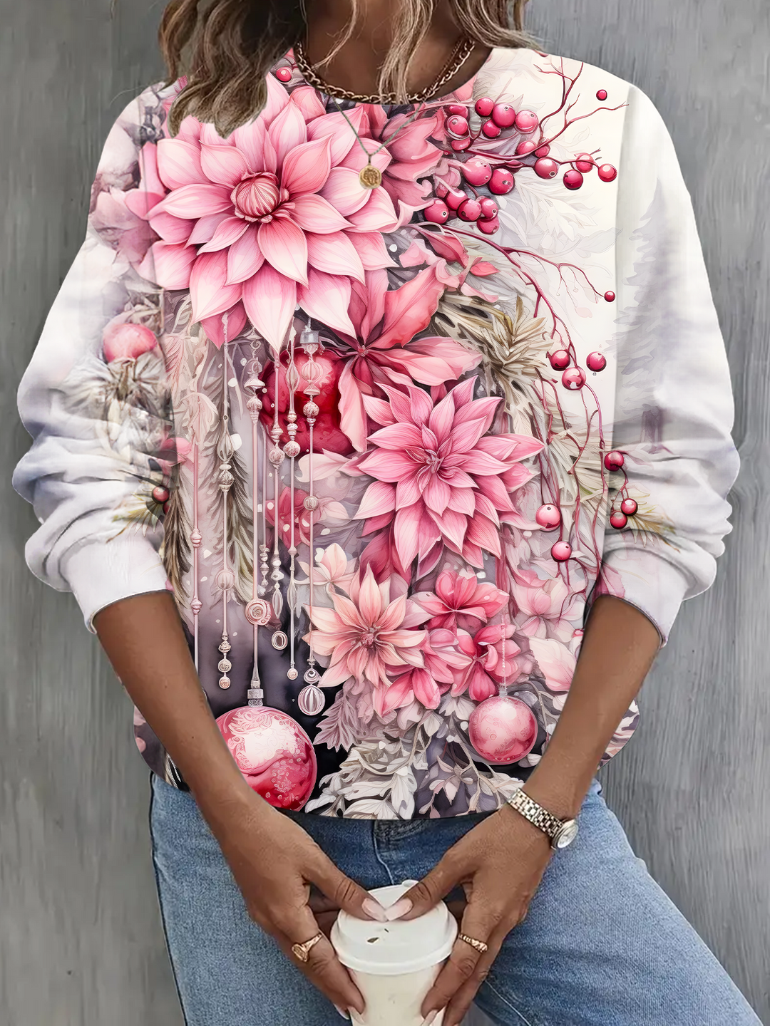 Vintage Christmas Ornaments Printed Long Sleeve Casual Top