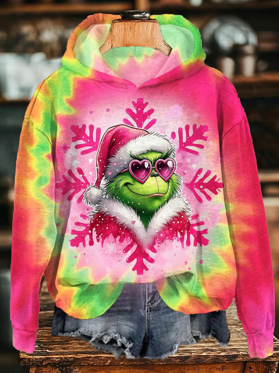 Christmas Grinch Print Long Sleeve Printed Hoodie