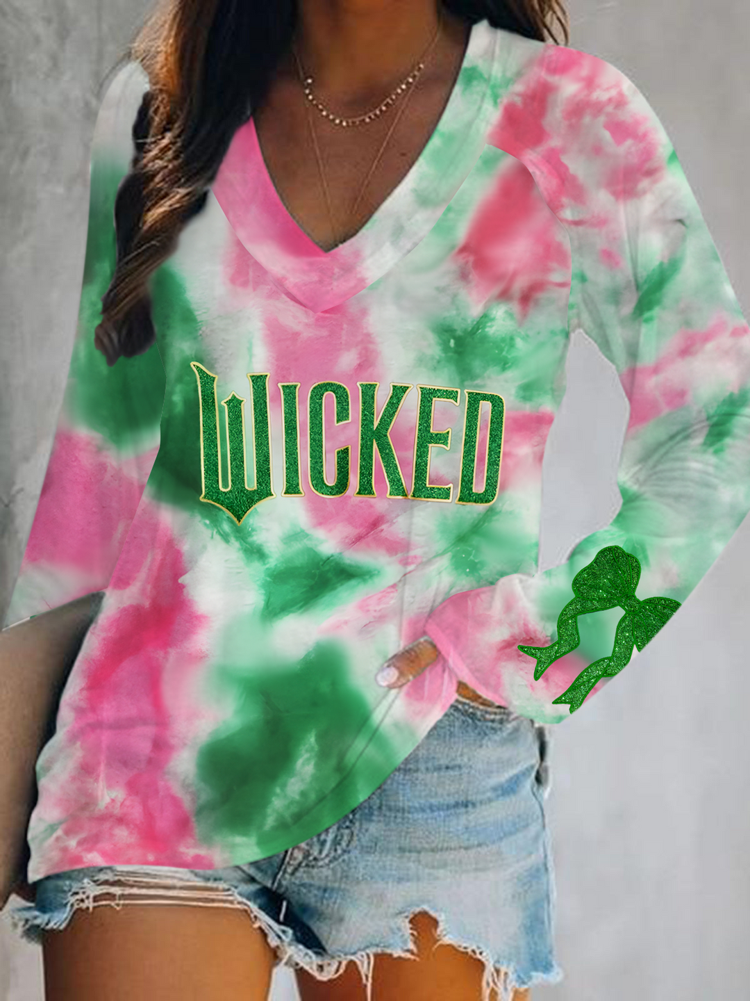 Witch Movie Inspired Tie-Dye Print V-Neck Long Sleeve Top