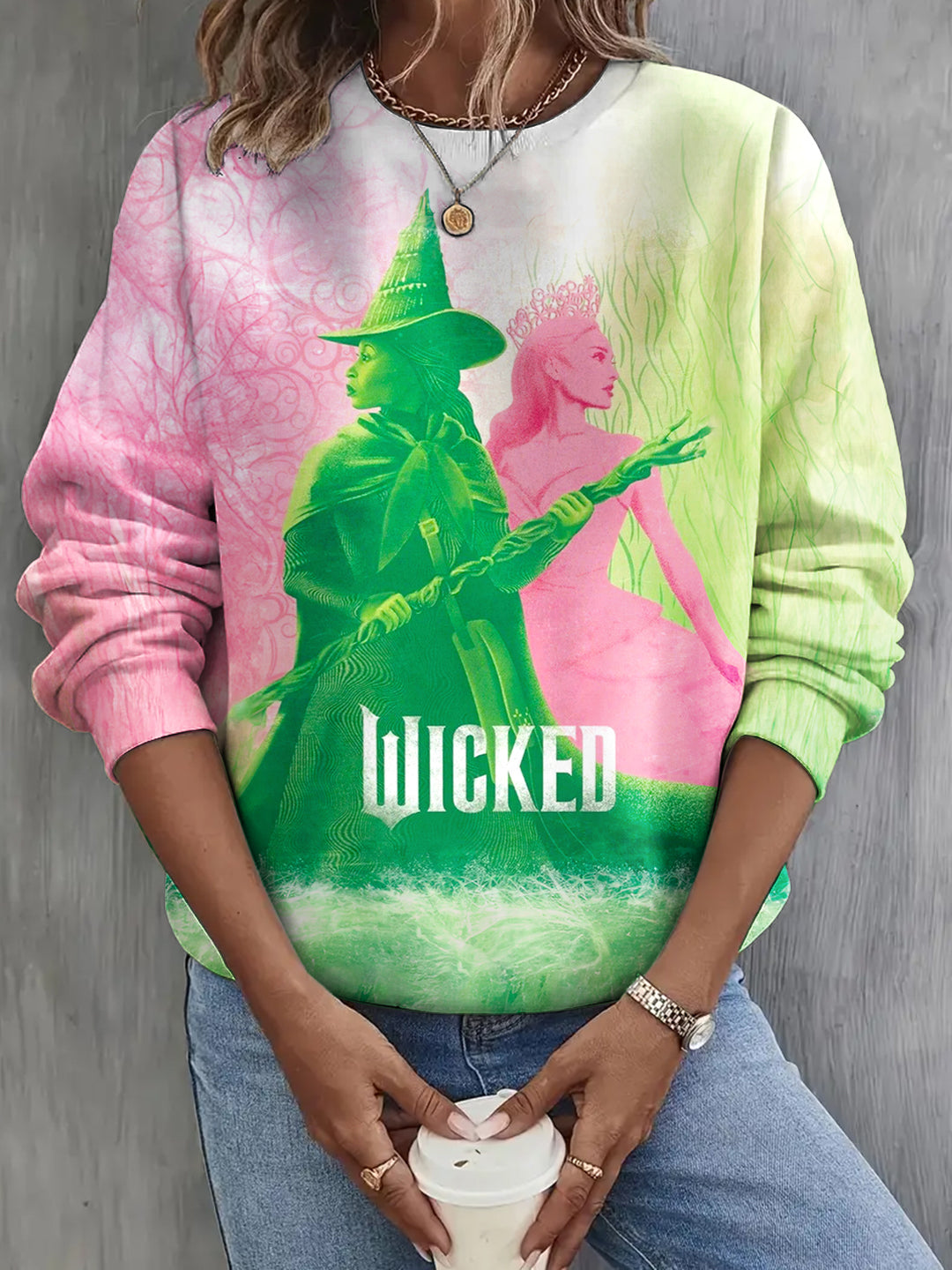 Wicked Movie Print Long Sleeve Casual Top