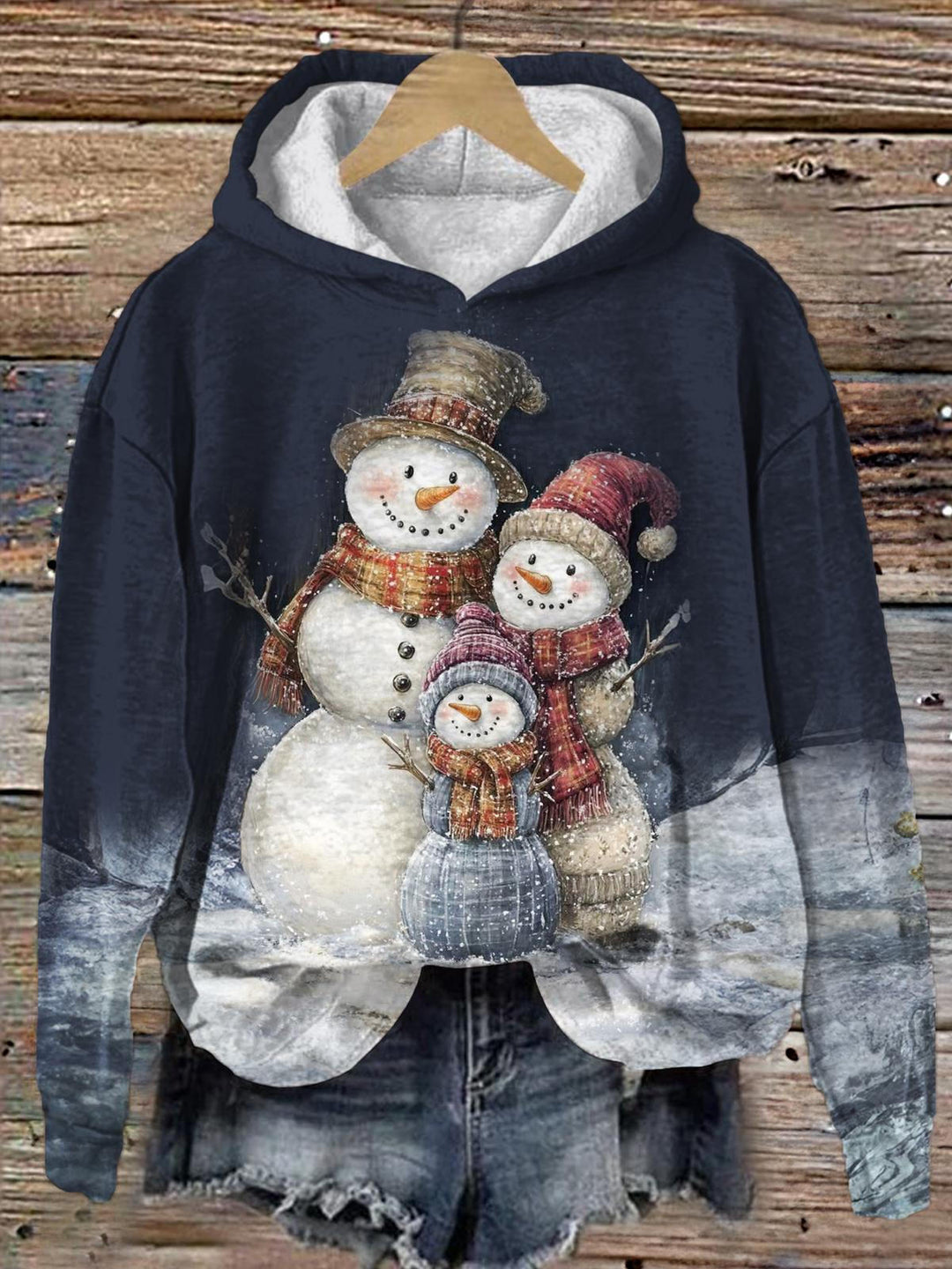Cartoon Snowman Family Long Sleeve Printed Hoodie