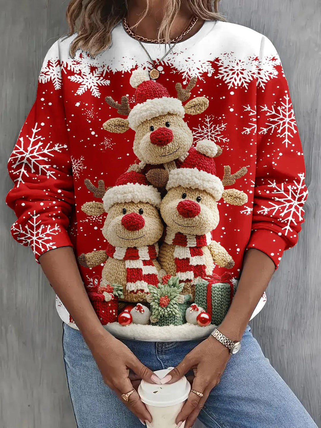 Cartoon Elk Long Sleeve Casual Top