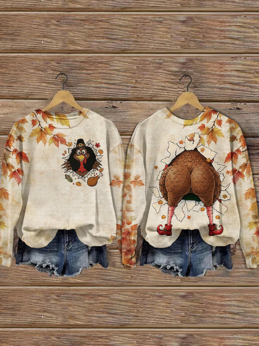 Fun Roast Chicken Printed Long Sleeve Casual Top