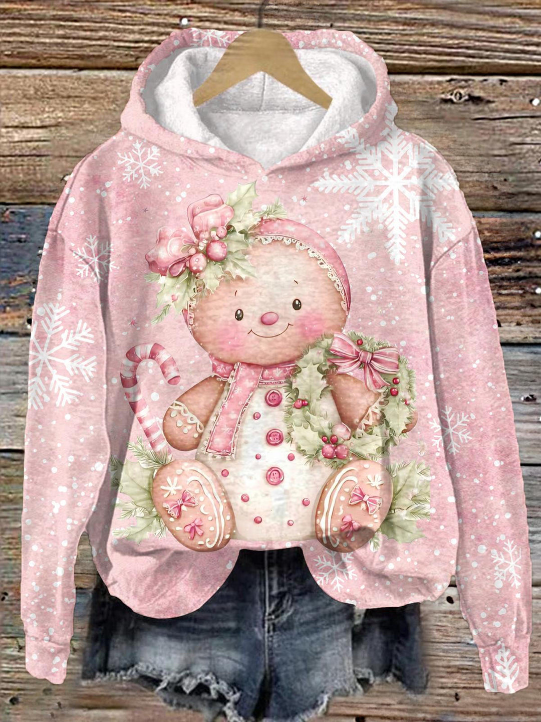 Cartoon Gingerbread Man Long Sleeve Printed Hoodie