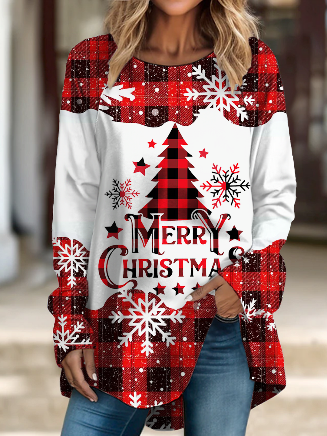 Classic Christmas Tree Long Sleeve Casual Top