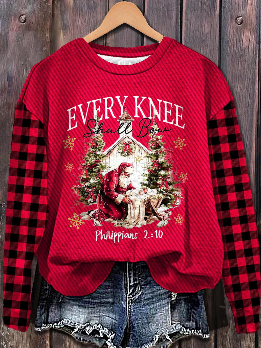 Retro Christmas Jesus Printed Long Sleeve Casual Top
