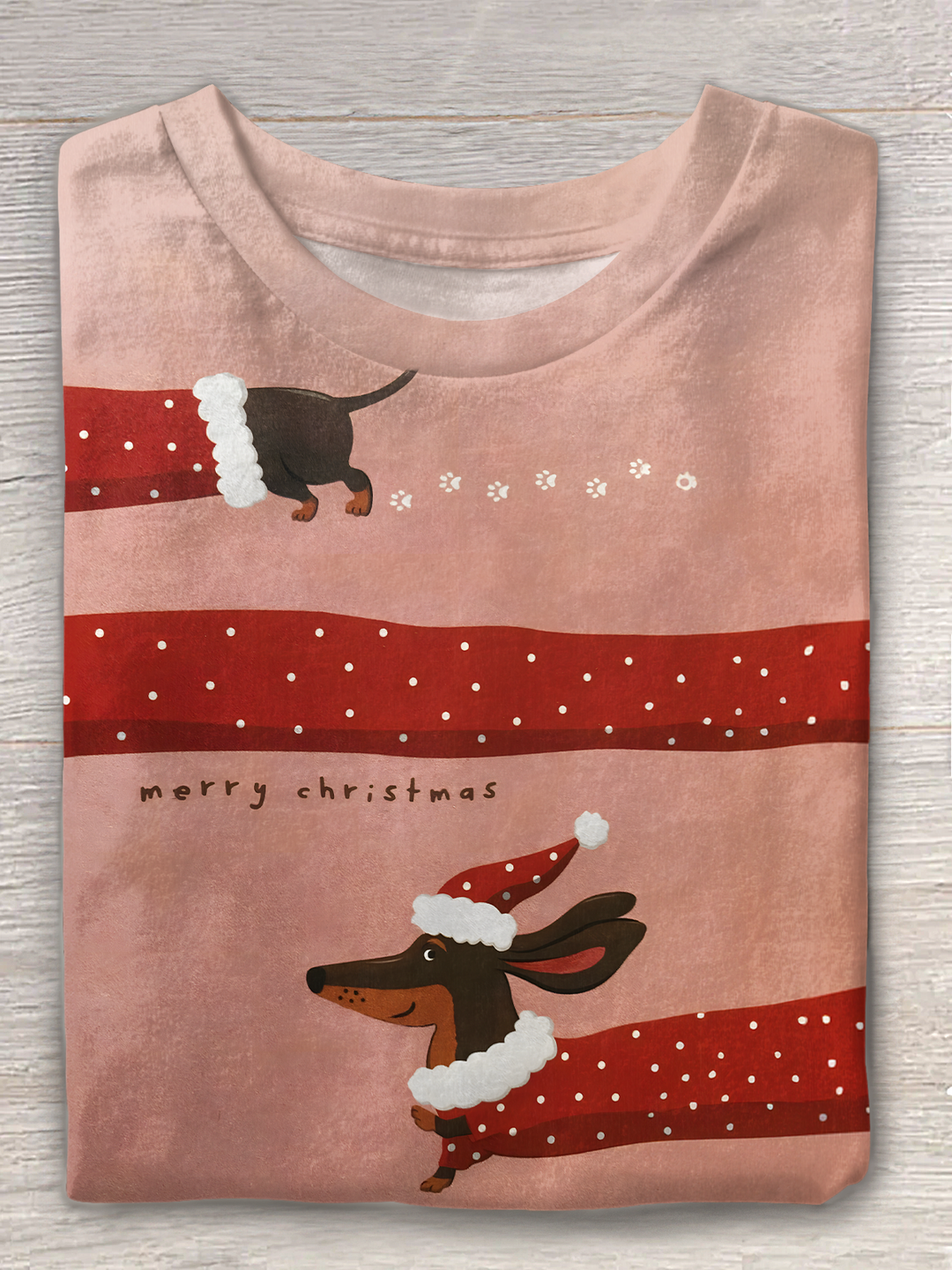 Merry Christmas Fun Dachshund Dog Crew Neck T-shirt