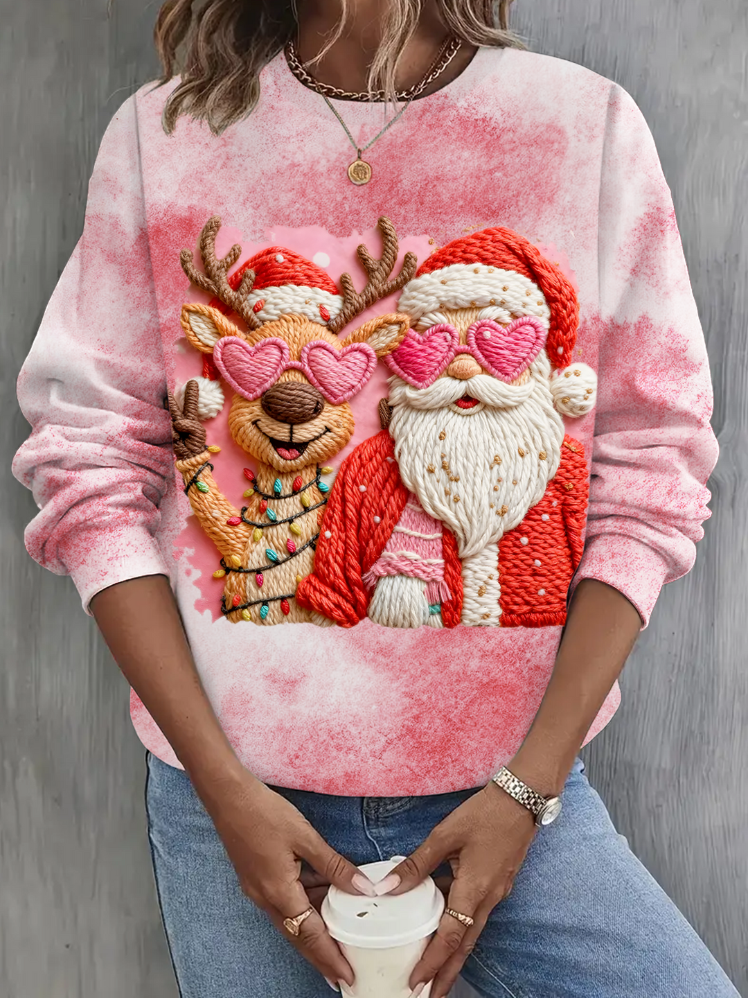 Retro Fun Santa Claus Printed Long Sleeve Casual Top