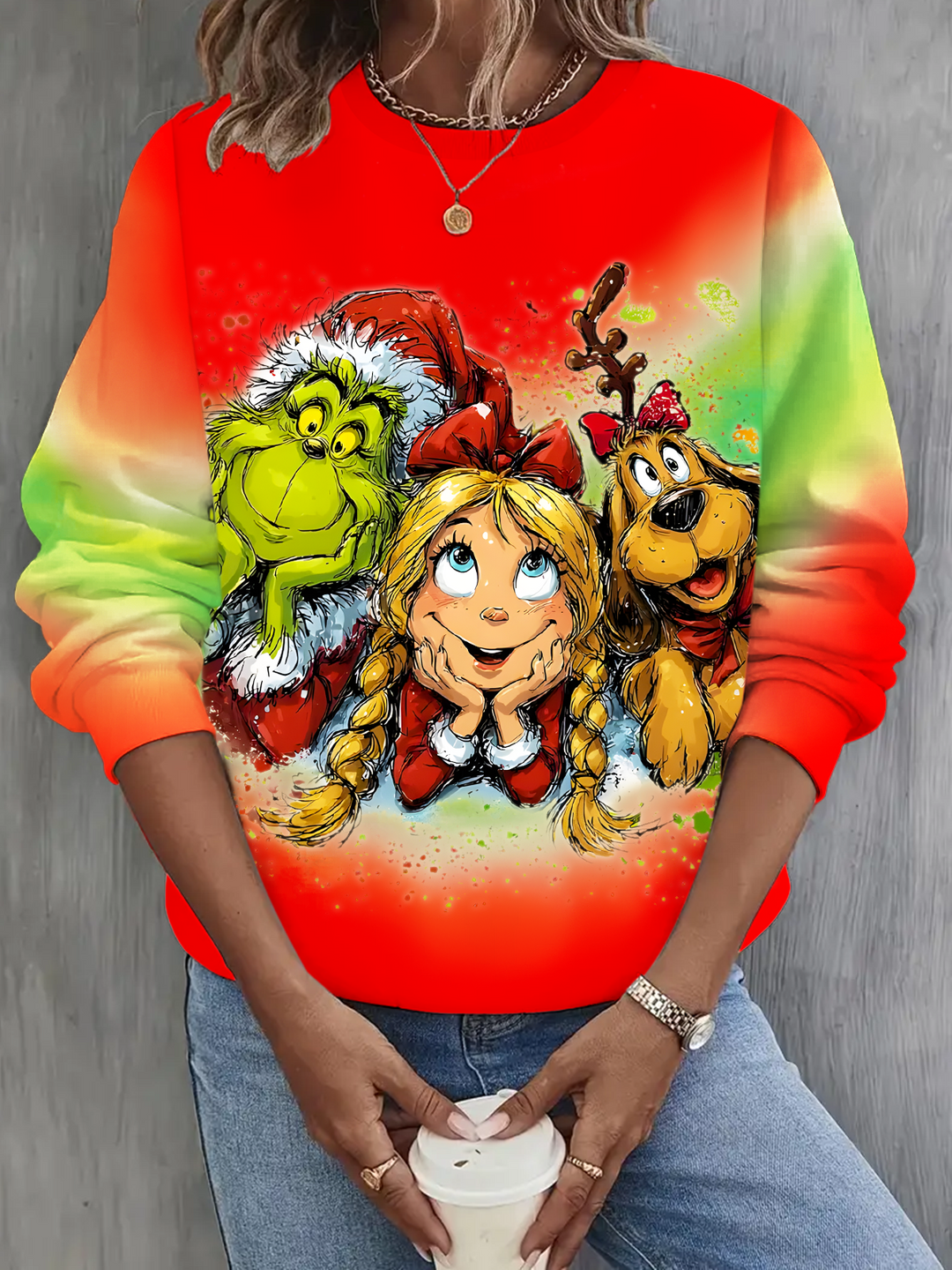 Retro Grinch Christmas Long Sleeve Casual Top