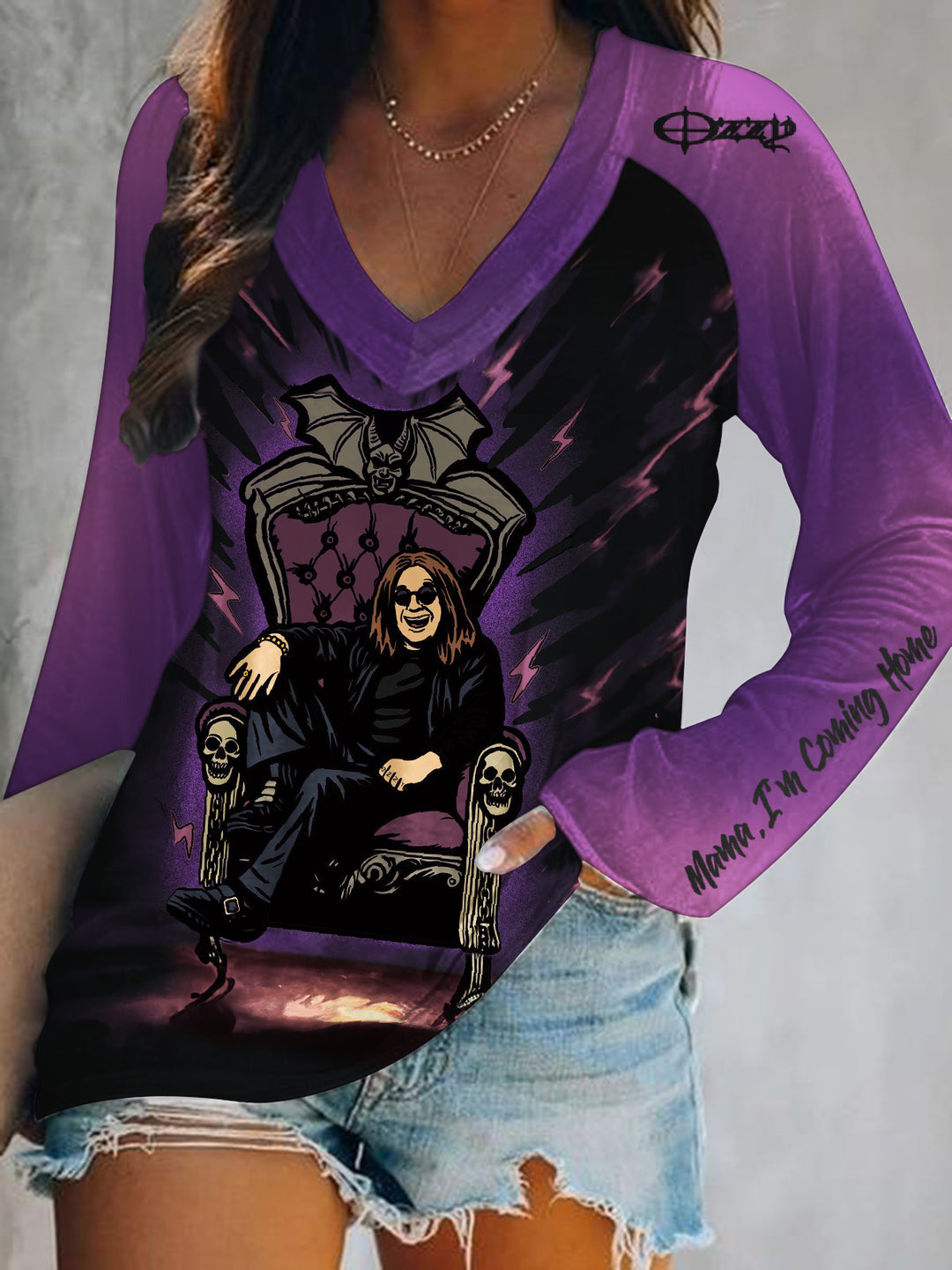 Ozzy Osbourne Print V-Neck Long Sleeve Top