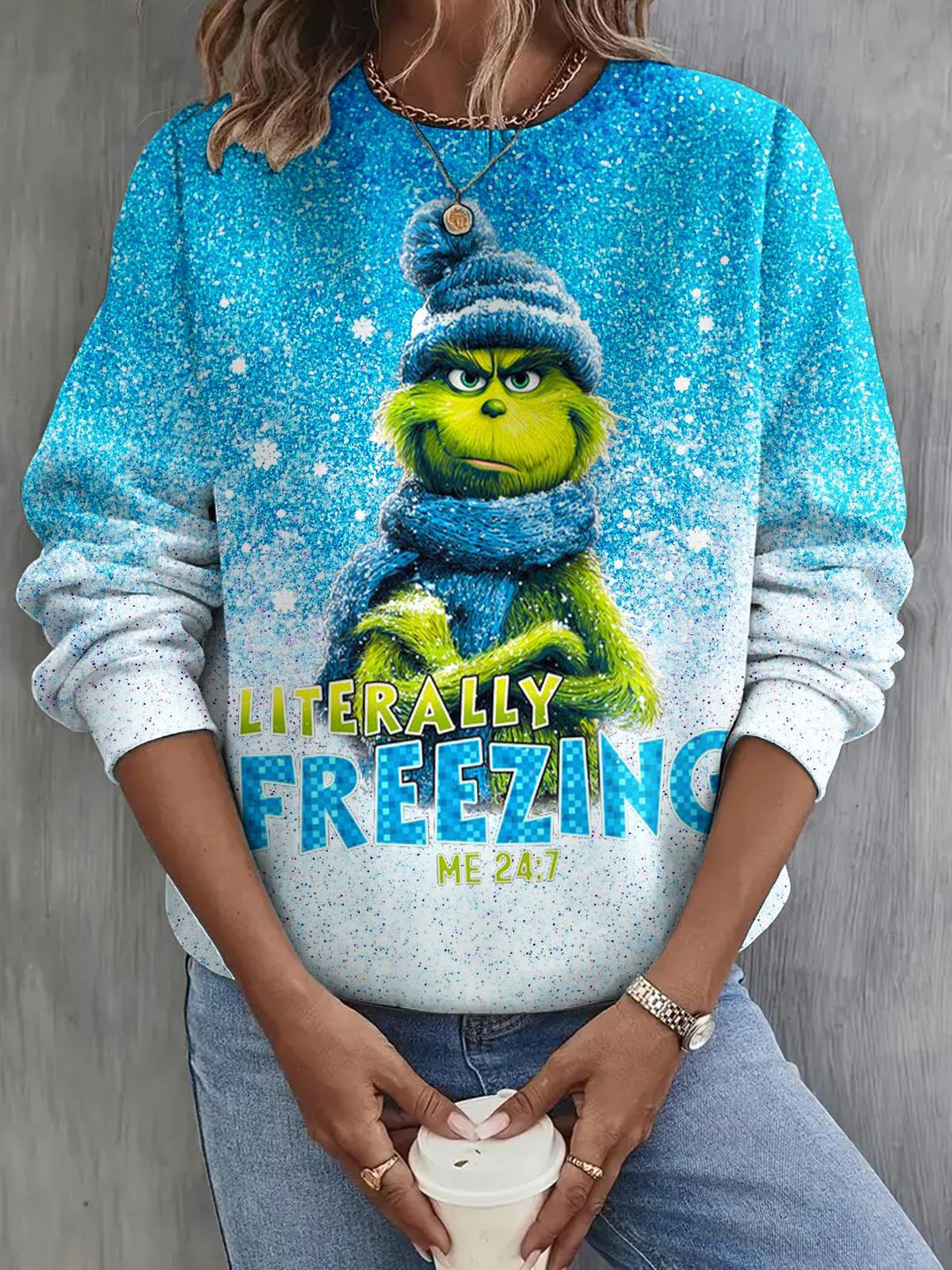 Christmas Grinch Sequin Print Long Sleeve Casual Top