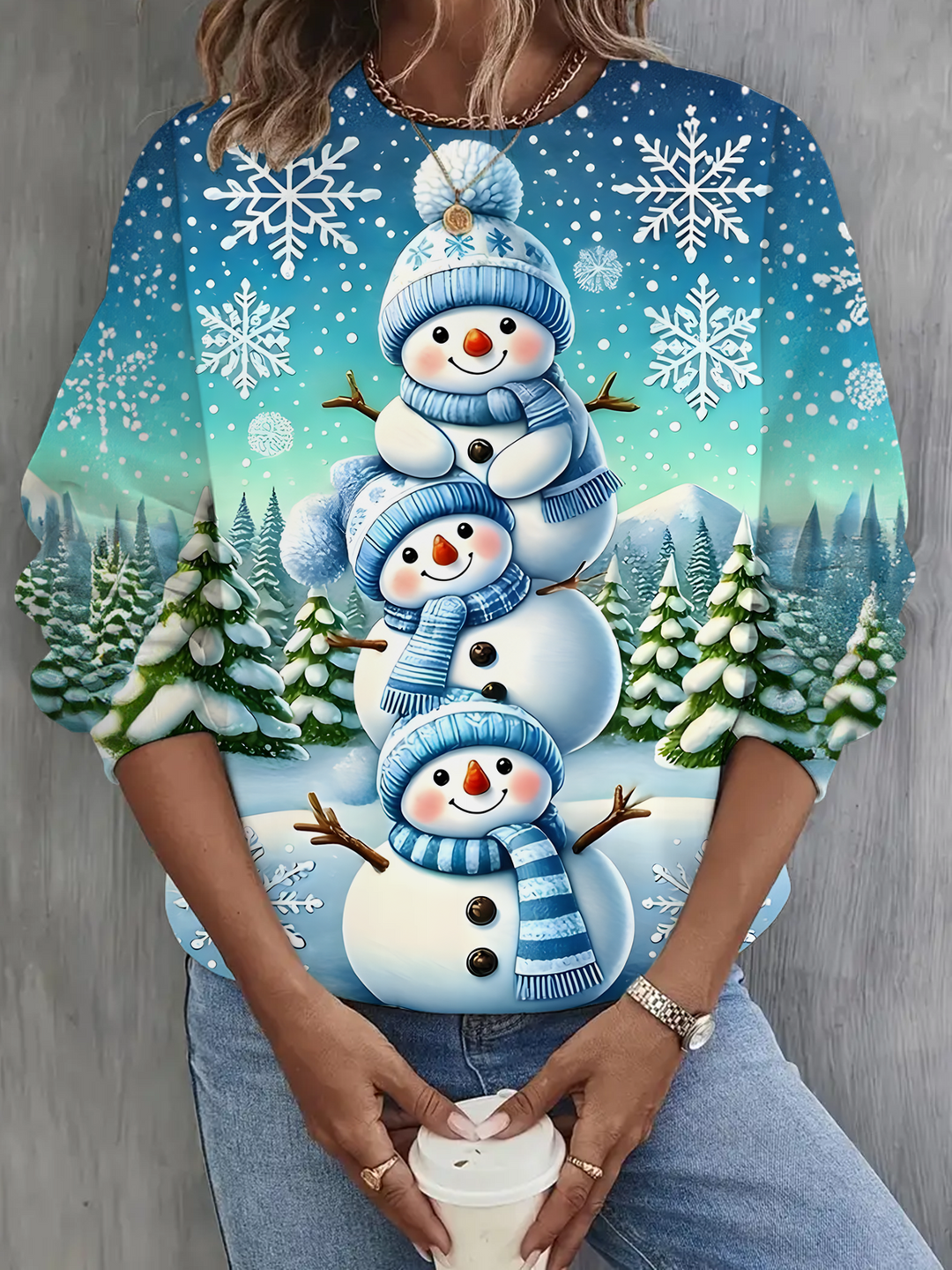 Fun Winter Snowman Making Printed Long Sleeve Casual Top