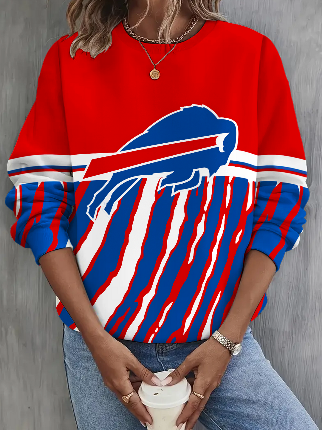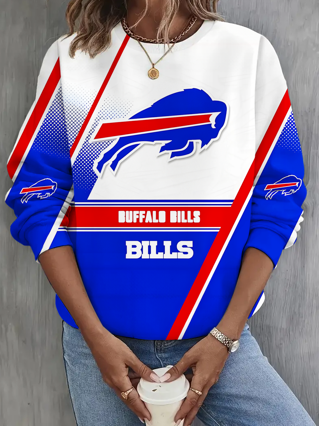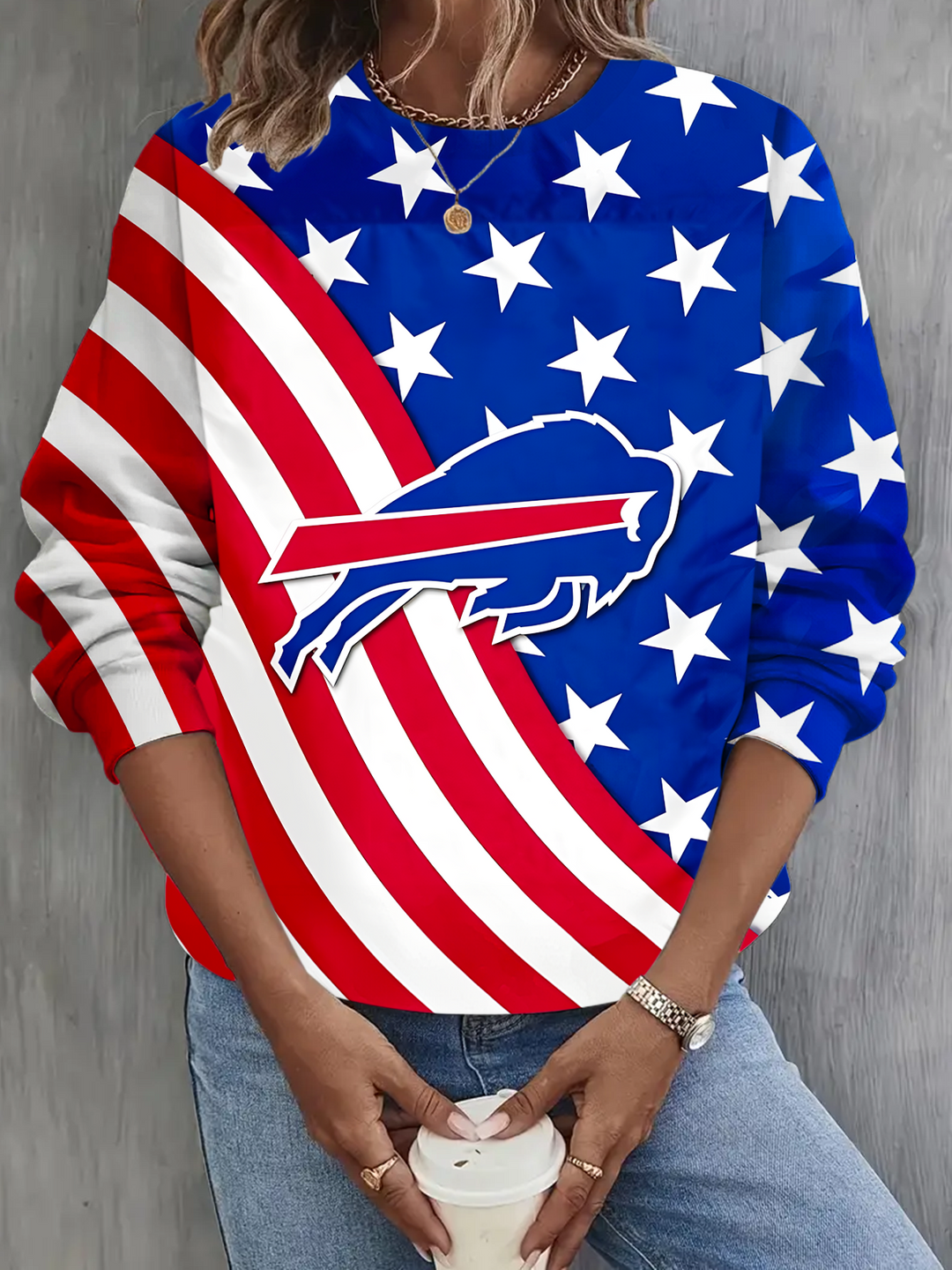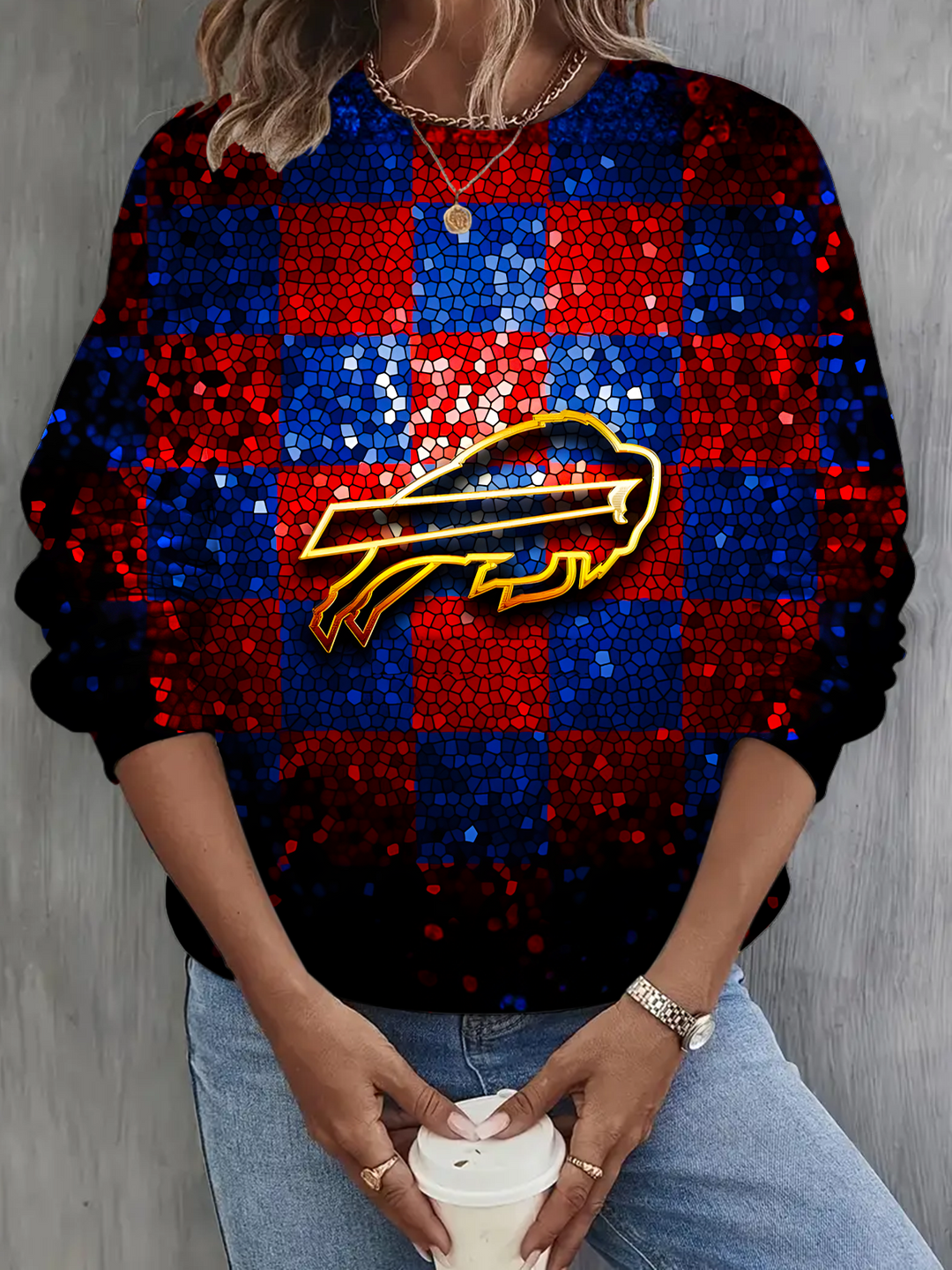 Sequined Checkered Buffalo Bills Long Sleeve Casual Top