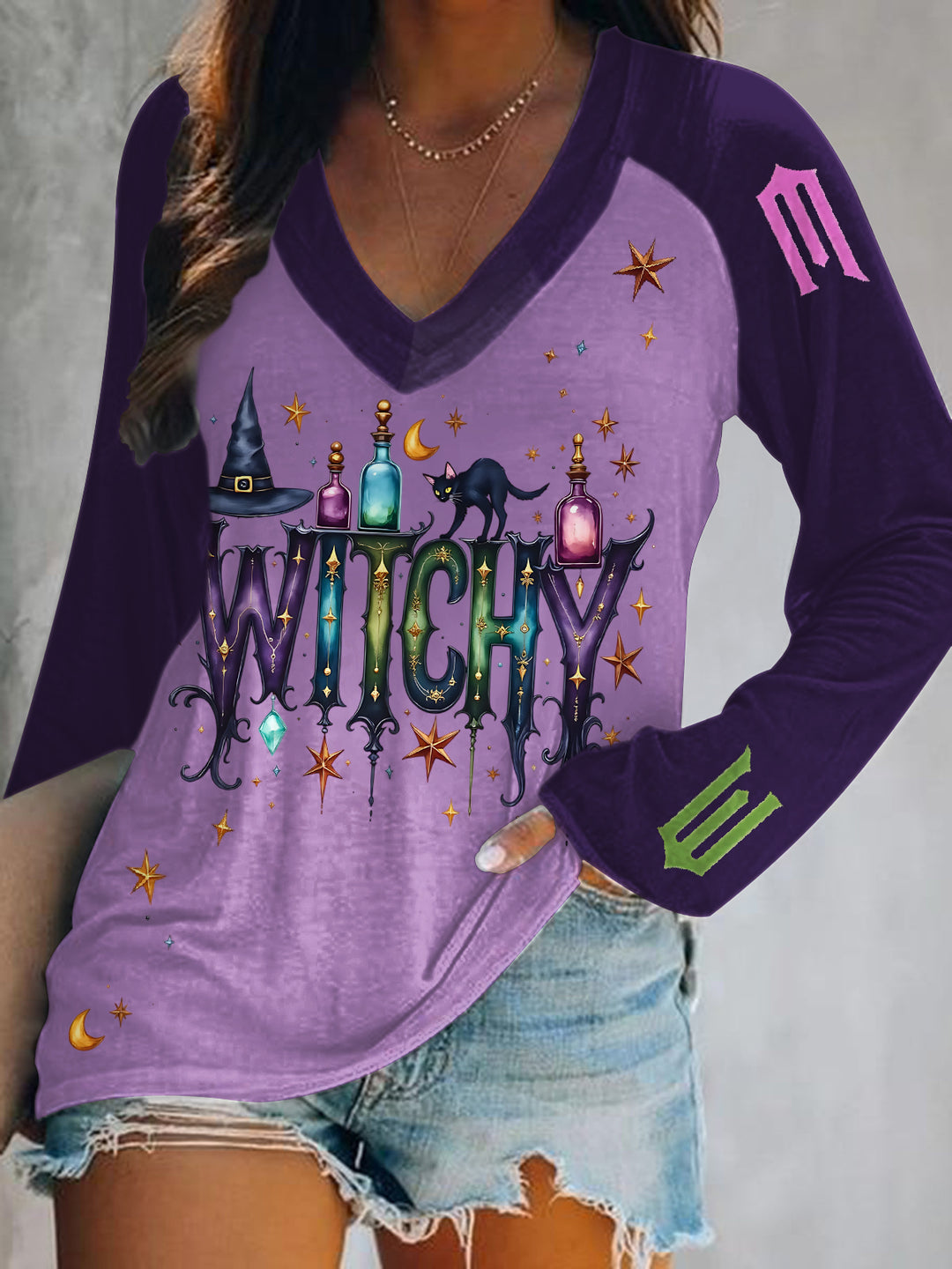 Wicked for Good Art Print V-Neck Long Sleeve Top